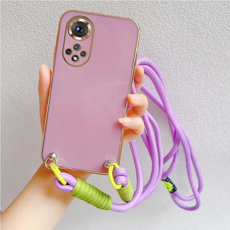Funda de teléfono con correa de cordón chapado para Huawei Honor 10 20 Lite 30s 20s Play3 8x4 5T 4t 6t Pro 8X Max X8 X9 8A 9X Pro Y9s 7X