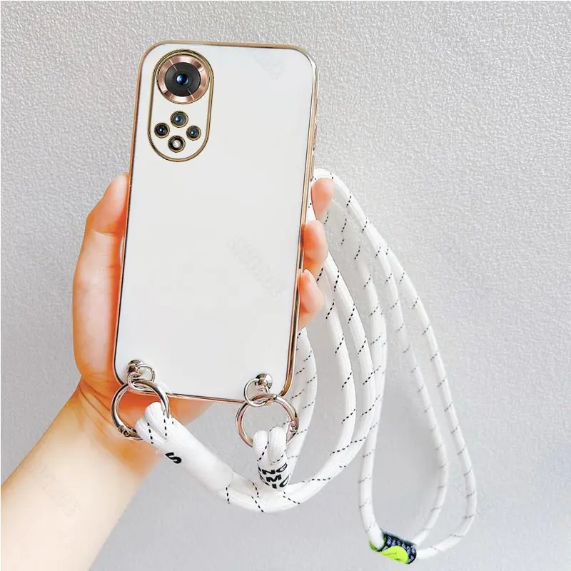 Funda de teléfono con correa de cordón chapado para Huawei Honor 10 20 Lite 30s 20s Play3 8x4 5T 4t 6t Pro 8X Max X8 X9 8A 9X Pro Y9s 7X