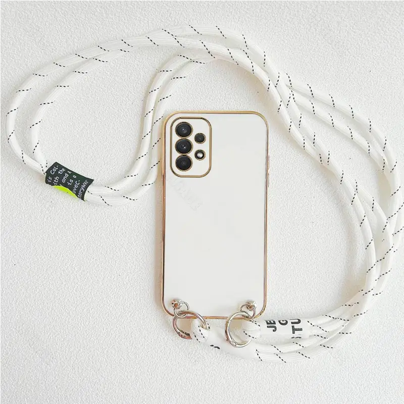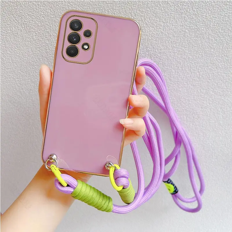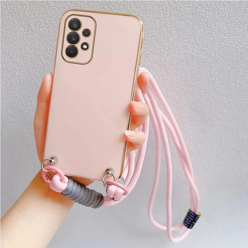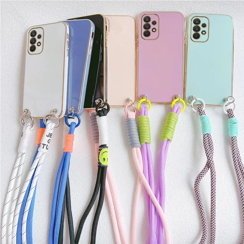 Funda de teléfono con correa de cordón chapada para Samsung Galaxy A32 A53 A52 A52S A73 A33 A72 A22 4G 5G A51 A71 A12 A23 A30S A50 M32