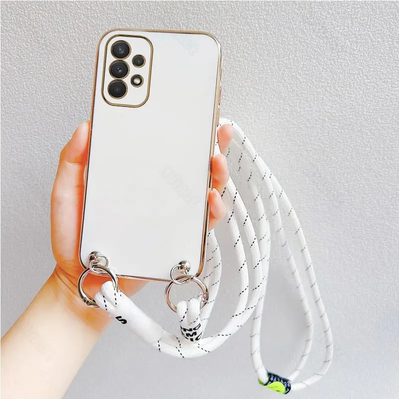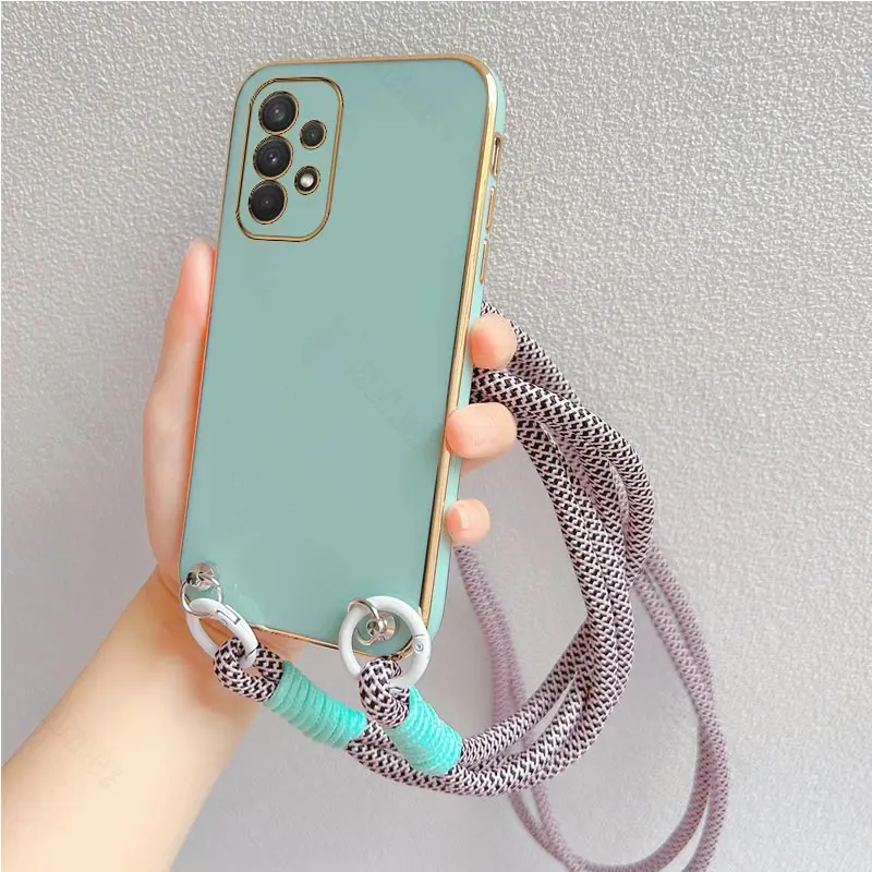 Funda de teléfono con correa de cordón chapada para Samsung Galaxy A32 A53 A52 A52S A73 A33 A72 A22 4G 5G A51 A71 A12 A23 A30S A50 M32