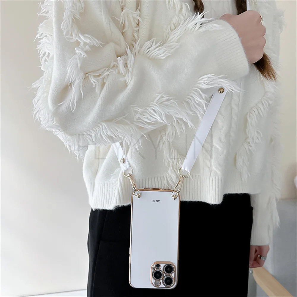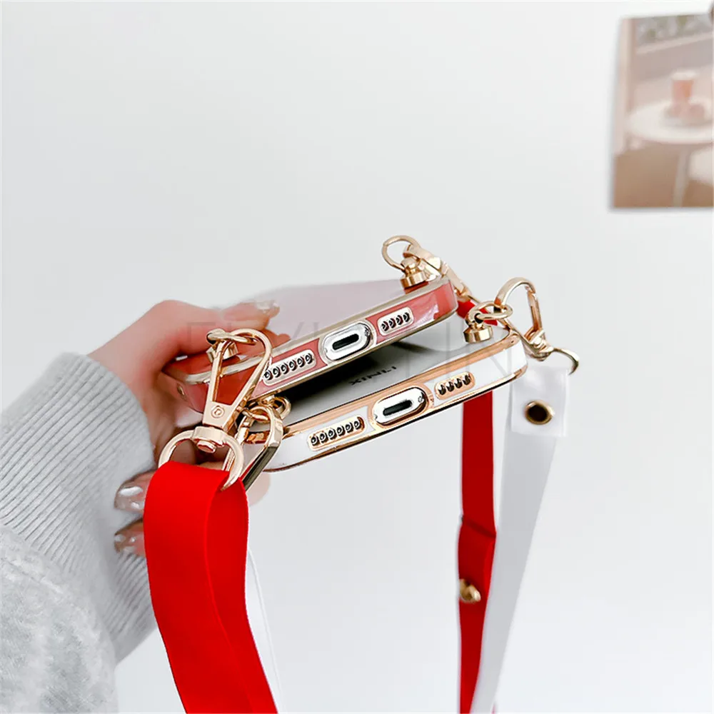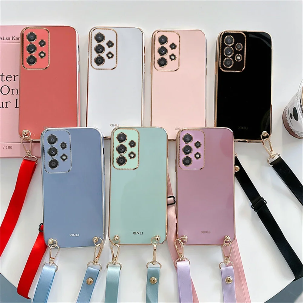 Lanyard Strap Phone Case For Samsung Galaxy A15 A05 A05S S24 Plus S24 Ultra Soft Silicone Electroplated Crossbody Necklace Cover