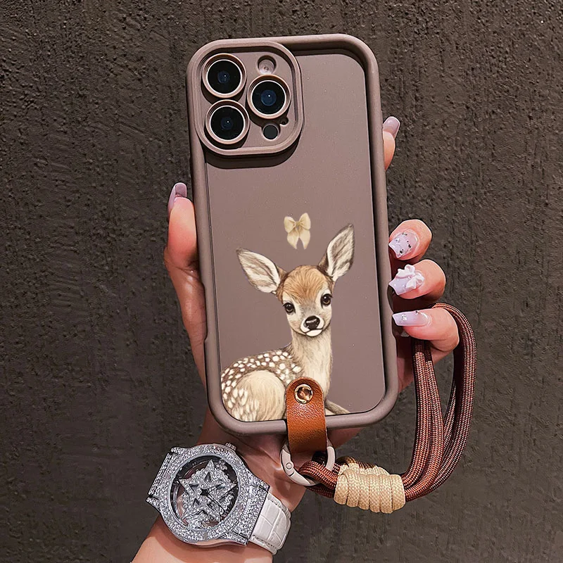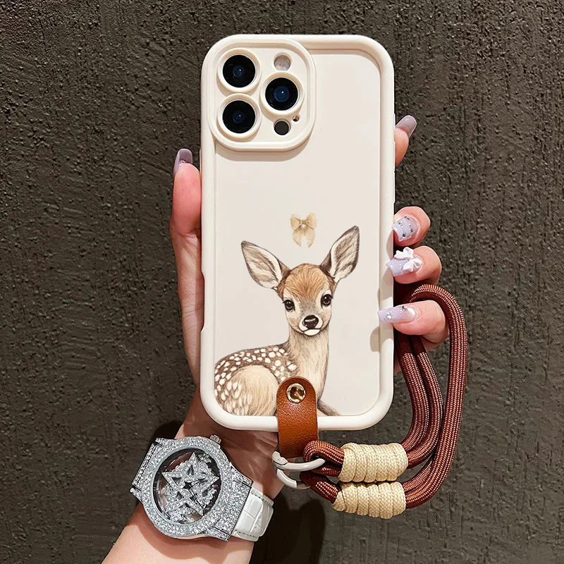 Funda de teléfono con correa de cordón suave con diseño de ciervo y lazo bonito para iPhone 17 16 15 14 13 12 11 Pro Max 16E 17 Air 7 8 Plus