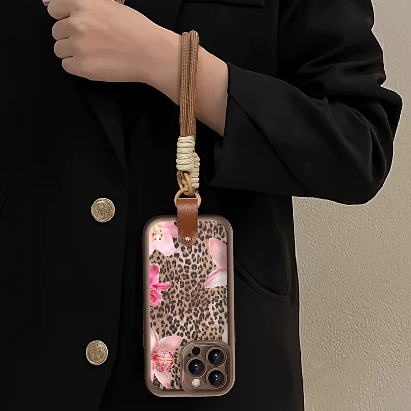 Funda de teléfono con correa Wrsit Floral rosa con estampado de leopardo para iPhone 17 Pro Max 16 15 14 13 12 11 16E XS X XR 7 8 Plus, funda a prueba de golpes