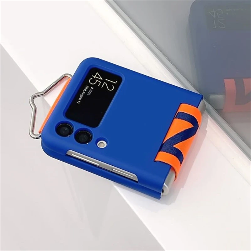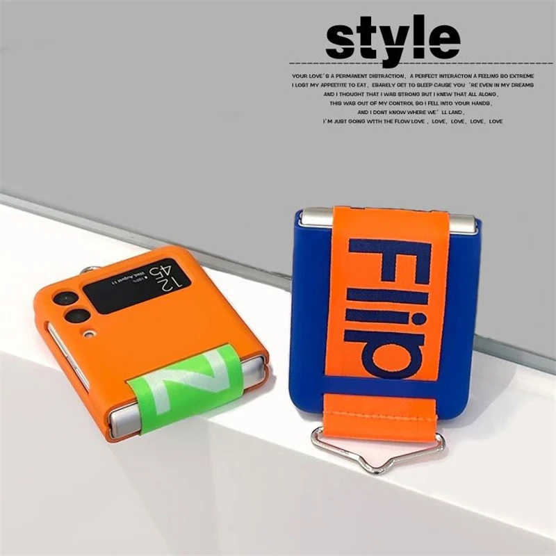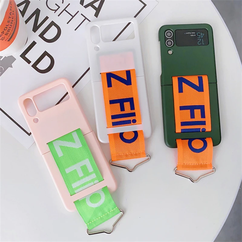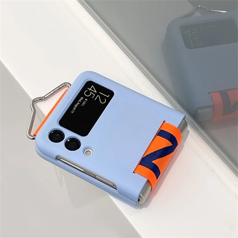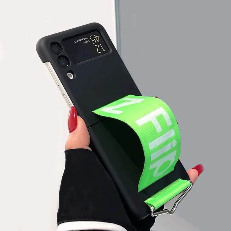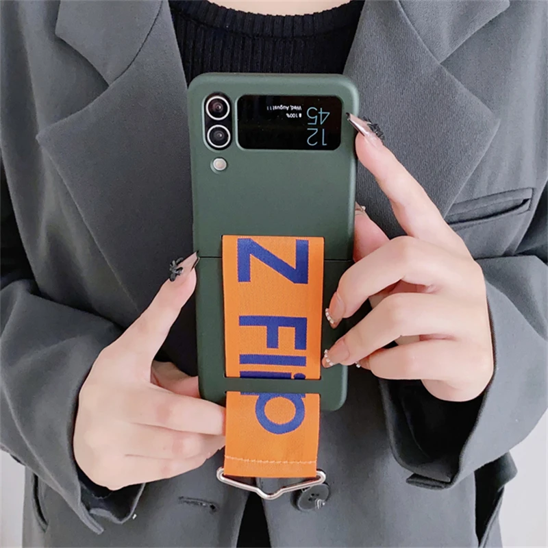 Funda de teléfono con correa de muñeca tejida con personalidad a la moda para Samsung Galaxy Z Flip 5 4 3, funda de silicona suave para Samsung Z Flip 5, Fundas