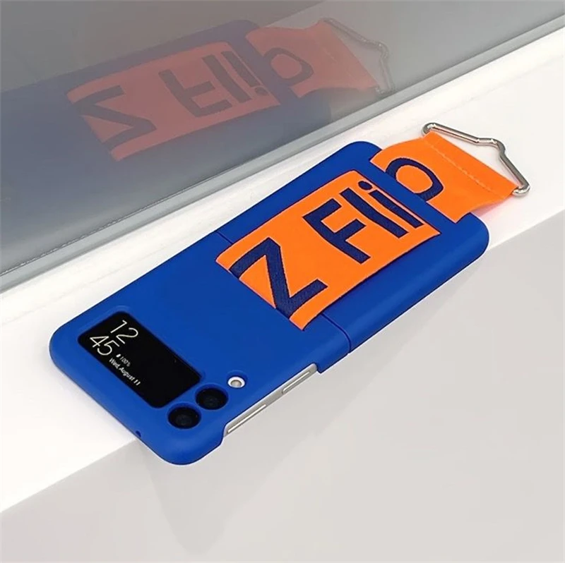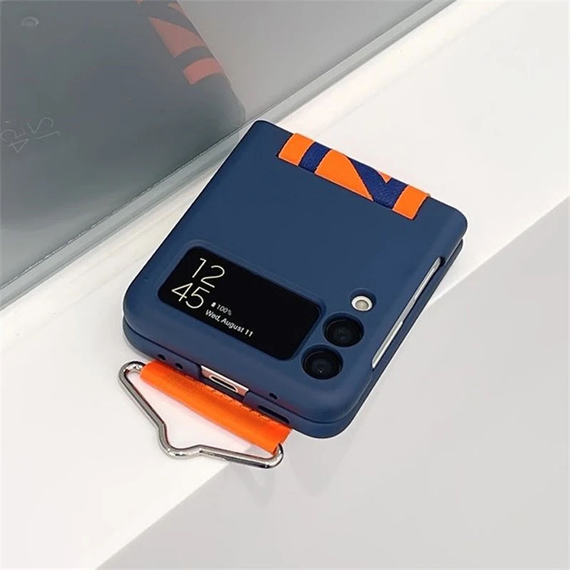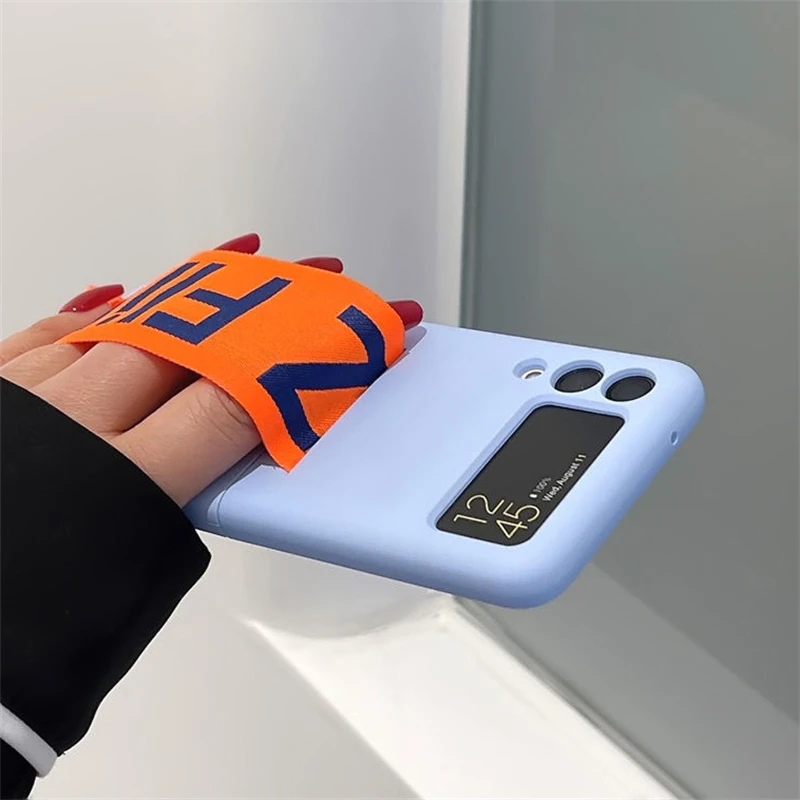 Funda de teléfono con correa para muñeca tejida con personalidad a la moda para Samsung Galaxy Z Flip 5 4 3 funda de silicona suave para Samsung Z Flip 5 Fundas