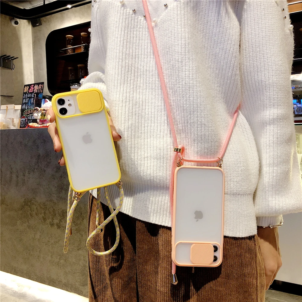 Funda de teléfono con correa de protección para lente de cámara, carcasa suave con cordón para iPhone 15, 14, 13, 12, 11Pro Max, 8, 7Plus, XR, X, XS, Max, SE, novedad