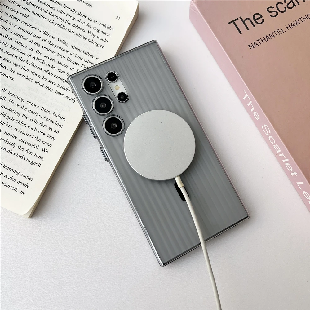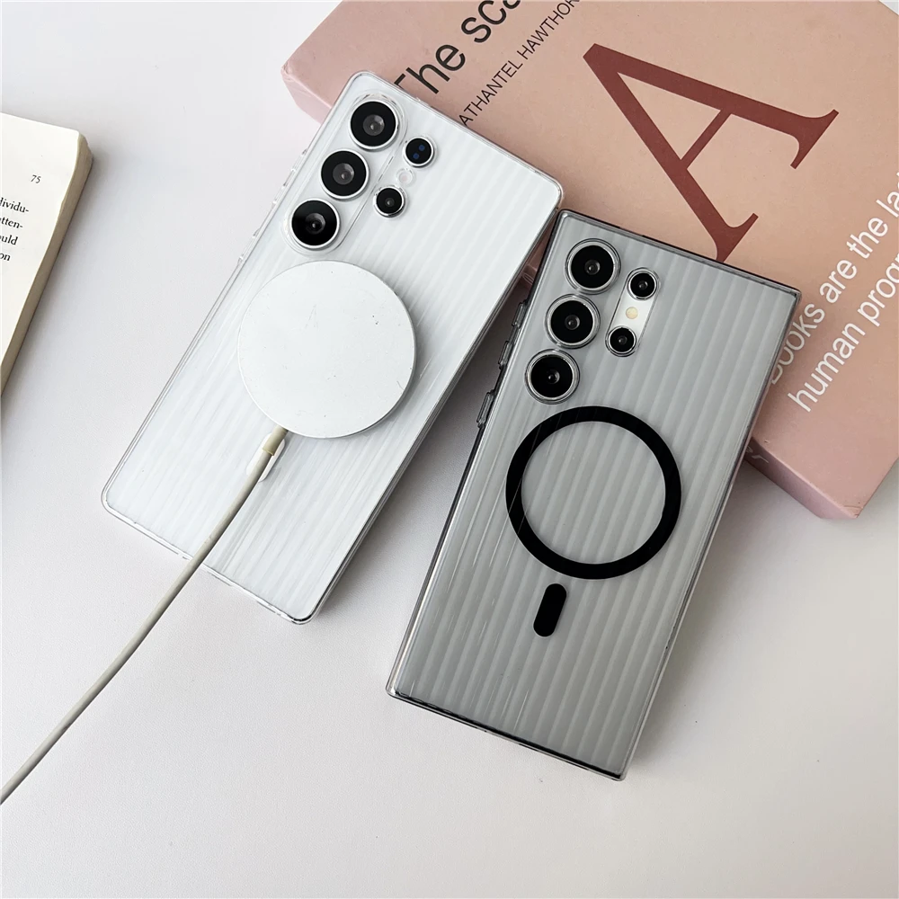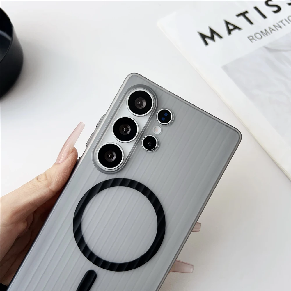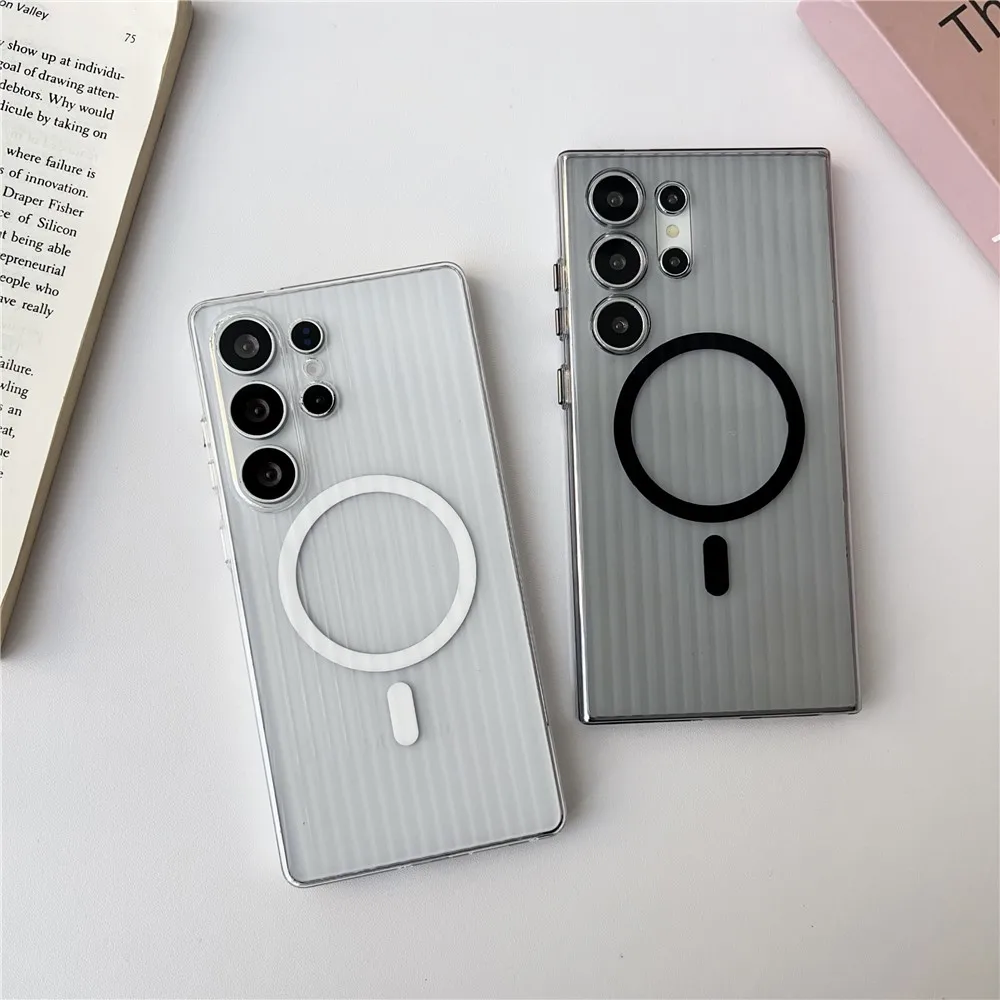 Comprar Funda de teléfono corrugada transparente mate para Magsafe Samsung Galaxy S25 Ultra S24 S23 Plus cubierta magnética de carga Ultra inalámbrica
