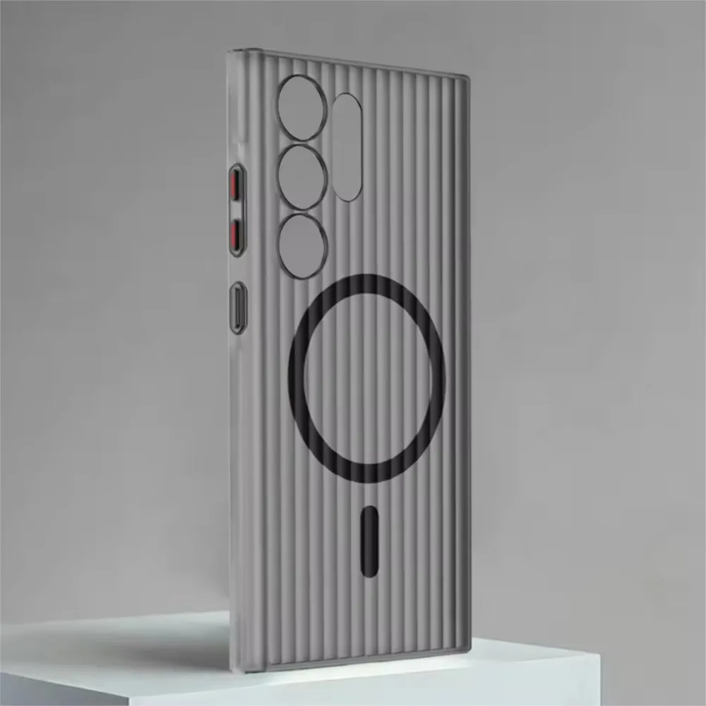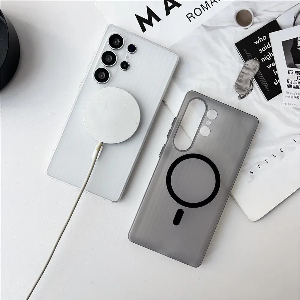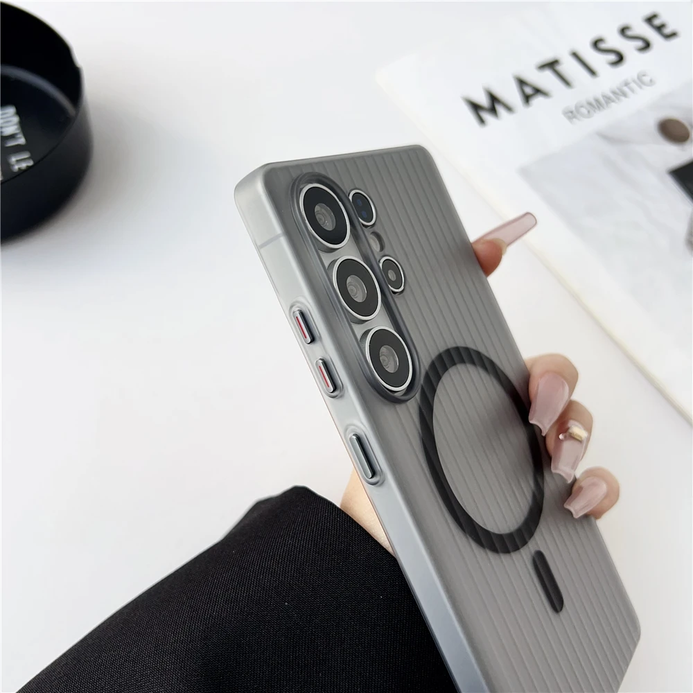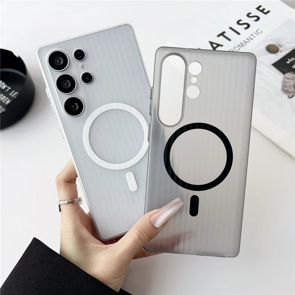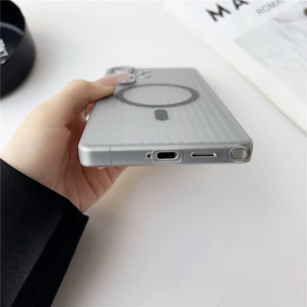 Comprar Funda de teléfono corrugada transparente mate para Magsafe Samsung Galaxy S25 Ultra S24 S23 Plus cubierta magnética de carga Ultra inalámbrica