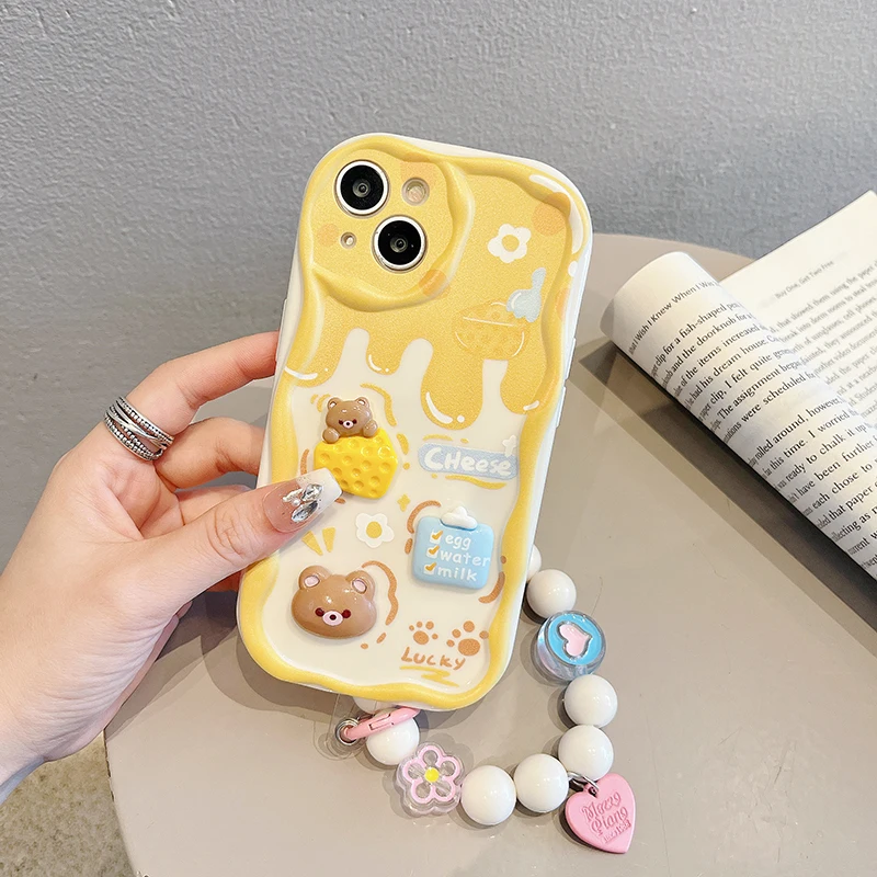 Comprar Funda de teléfono Cream Cake para Xiaomi Redmi Note 10 Lite, 10S, 10T, 11, 11E, 11S, 11T, 11SE, 12 Pro, 12T, 9T, funda de pulsera con correa de oso