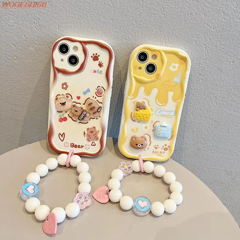 Comprar Funda de teléfono Cream Cake para Xiaomi Redmi Note 10 Lite, 10S, 10T, 11, 11E, 11S, 11T, 11SE, 12 Pro, 12T, 9T, funda de pulsera con correa de oso