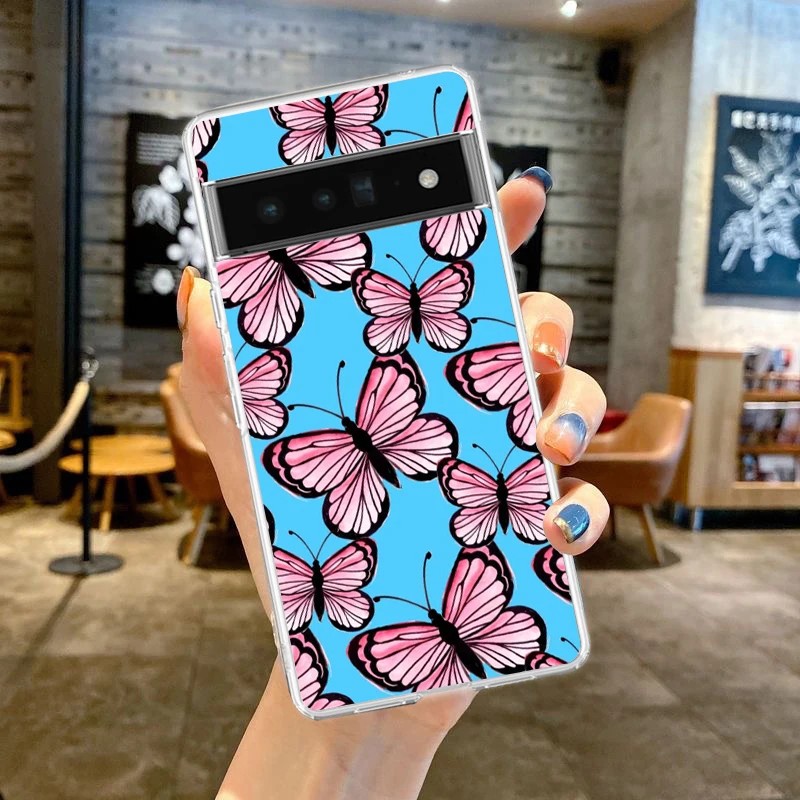 Comprar Funda de teléfono de cristal de mariposa para Google Pixel 8 7 6 Pro, carcasa de TPU suave para Pixel 6A 5 4 5A 4A 3A XL 5G, cubierta transparente a prueba de golpes