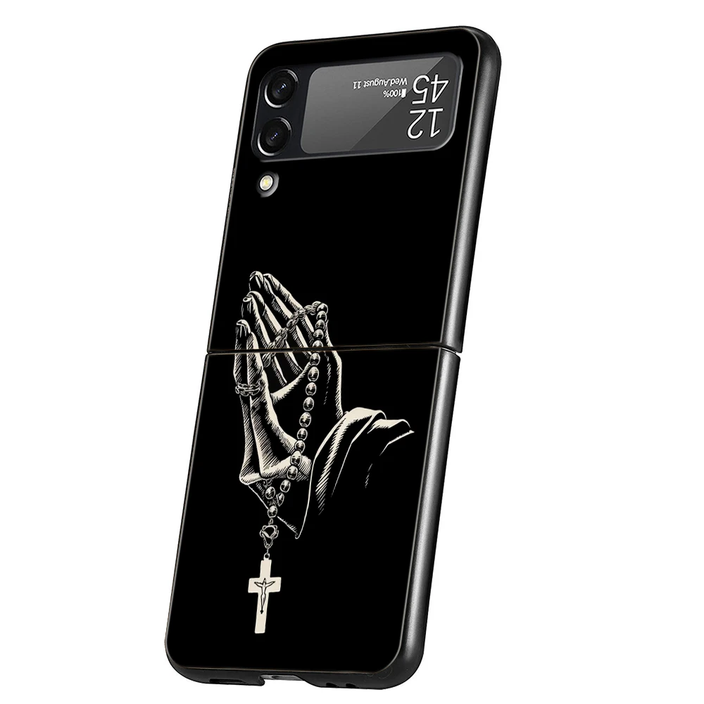 Funda de teléfono con cruz de Jesucristo de la Biblia para Samsung Galaxy Z Flip 3 4 5 6 7 PC plegable duro para Samsung Z Flip3 Flip4 Flip5