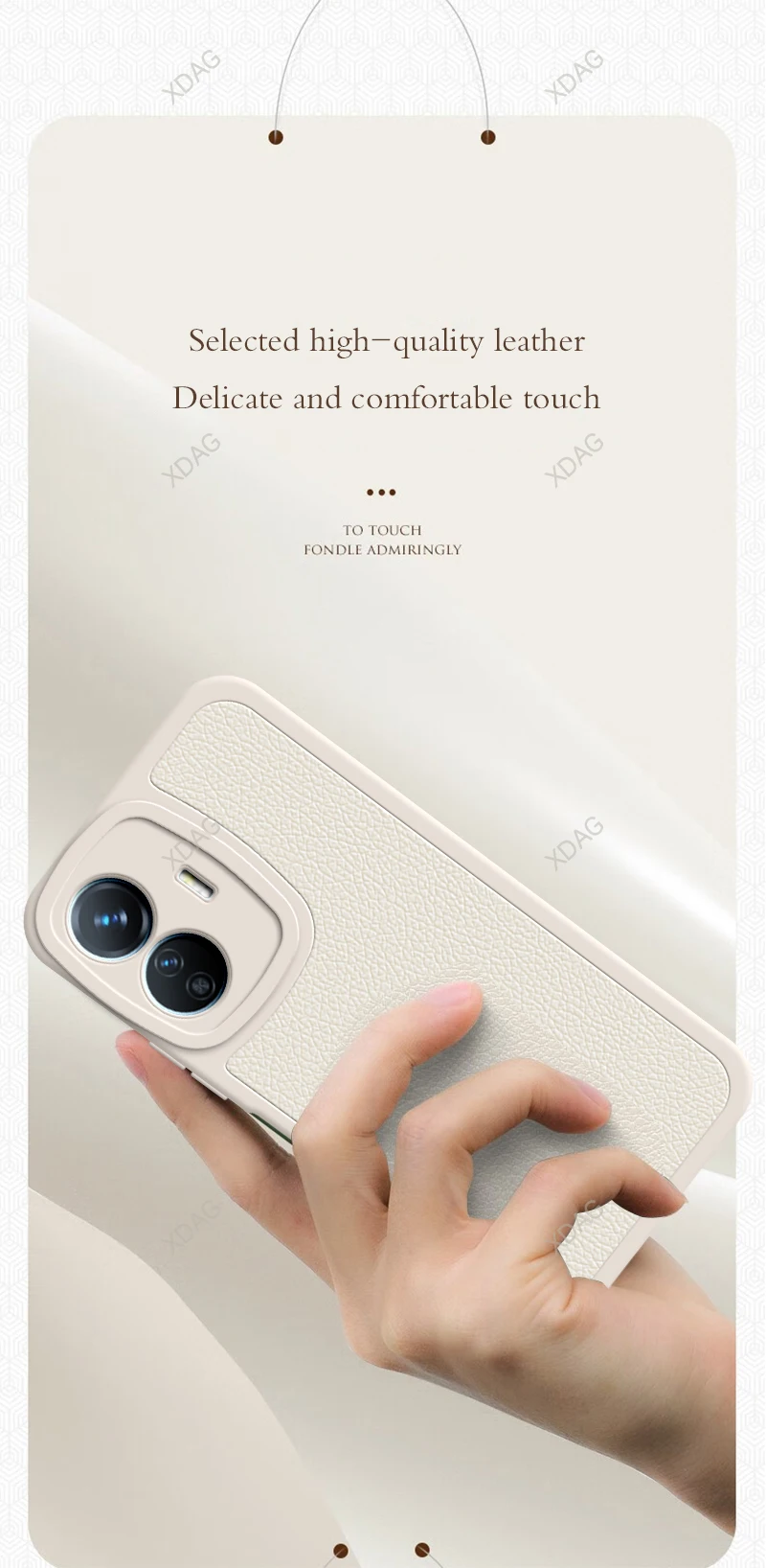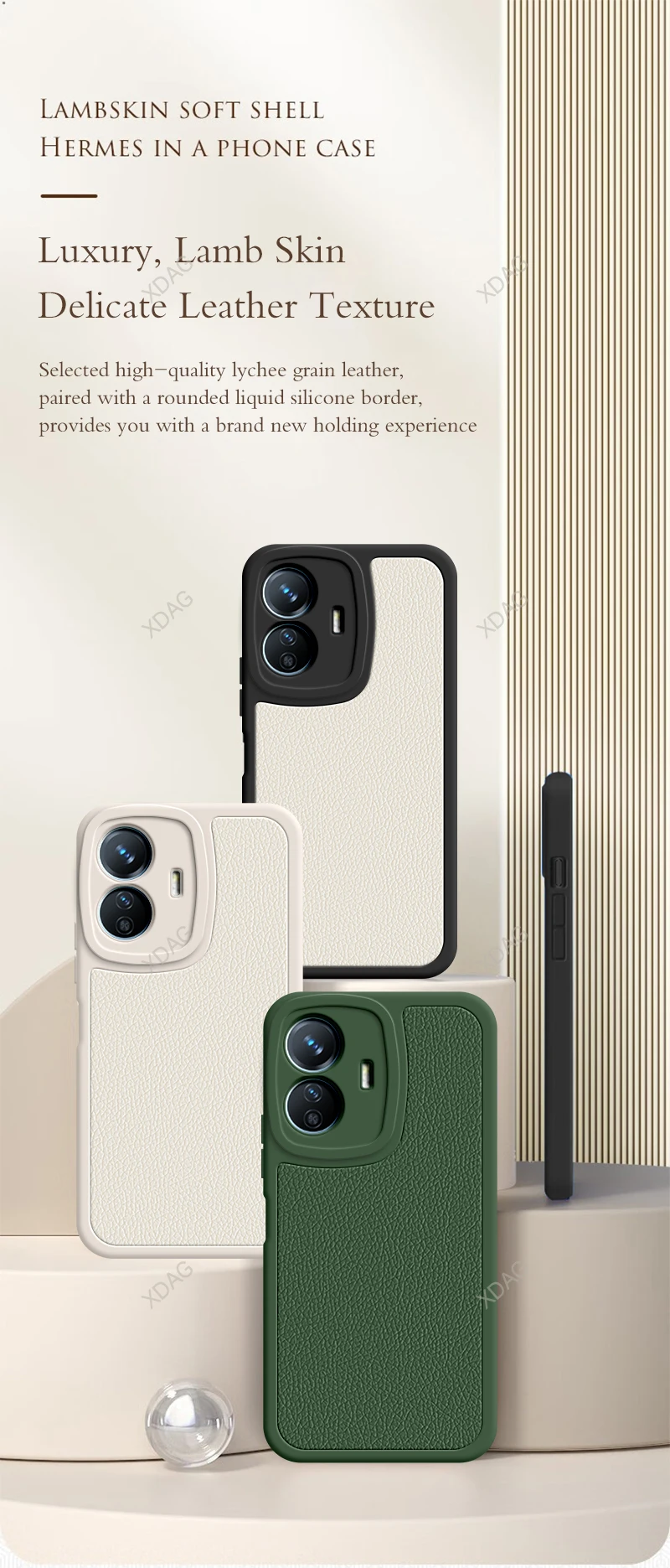 Funda de teléfono cuadrada de piel de cordero para VIVO Y77, Y77E, T1, Y77T, 5G, carcasa Litchi Peel, patrón a prueba de golpes, Funda protectora de cuero clásico - imagen 5