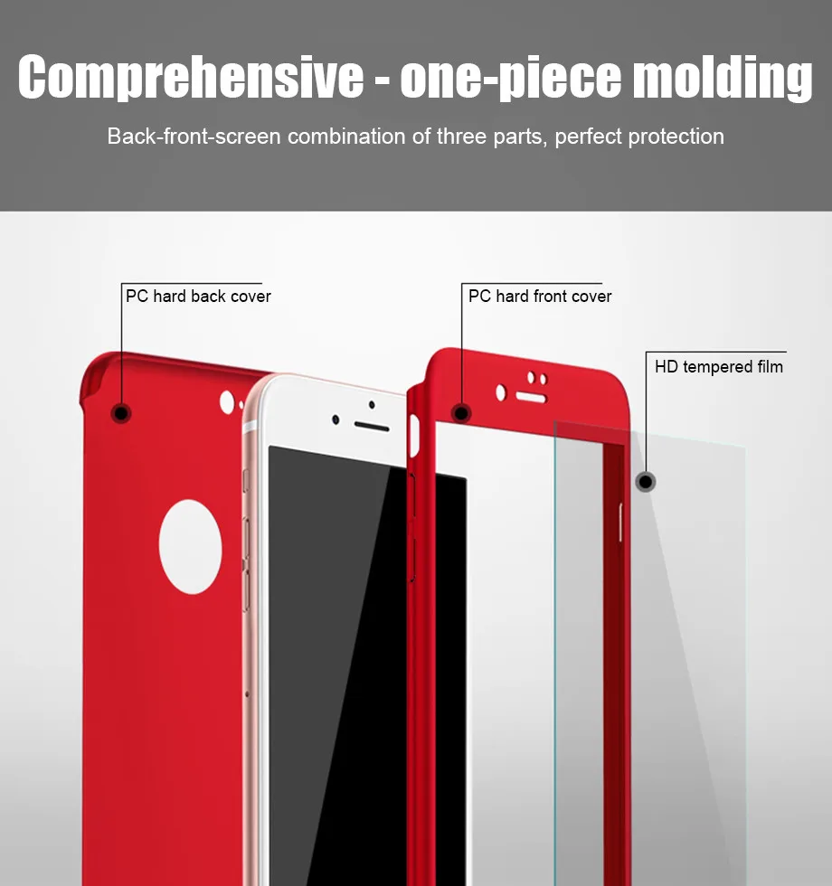 Comprar Funda de teléfono de cubierta completa 360 para iPhone 7 8 6 6s Plus X 5 5S SE funda protectora para iPhone 11 Pro XS Max XR 7 Plus con vidrio