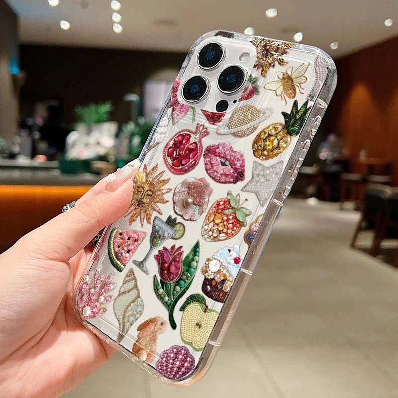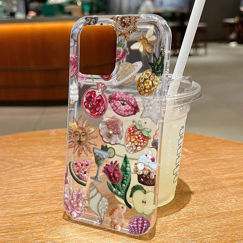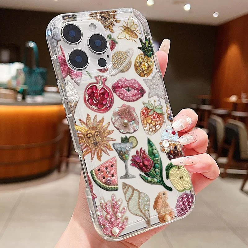 Funda de teléfono solar de granada con cuentas para iPhone 16 15 14 13 12 Mini 11 Pro Max 16E XS X XR 7 8 15 16 Plus SE2 funda de TPU suave transparente
