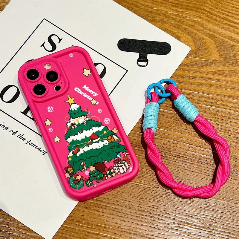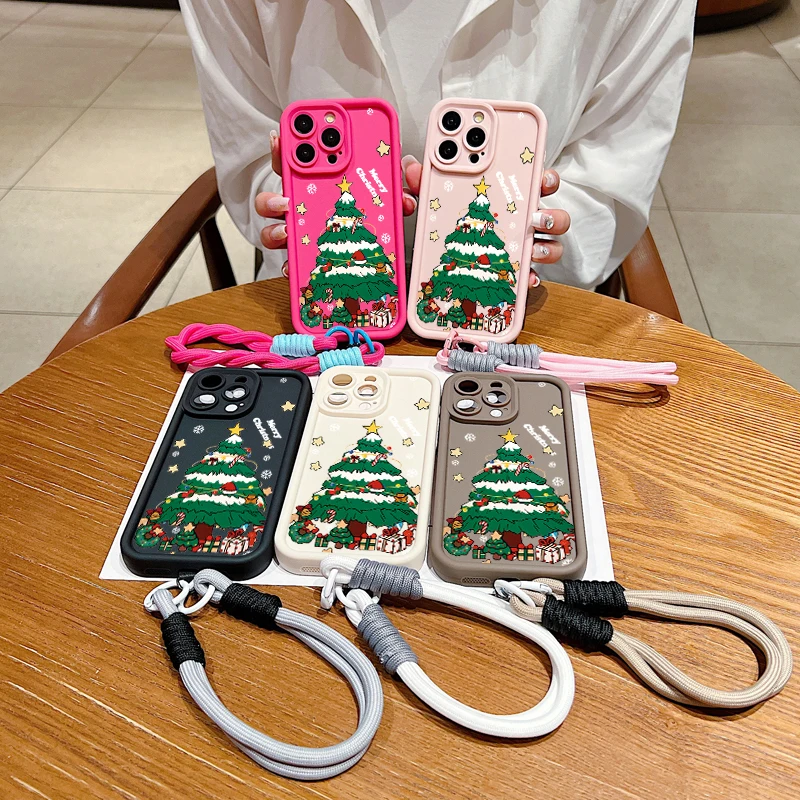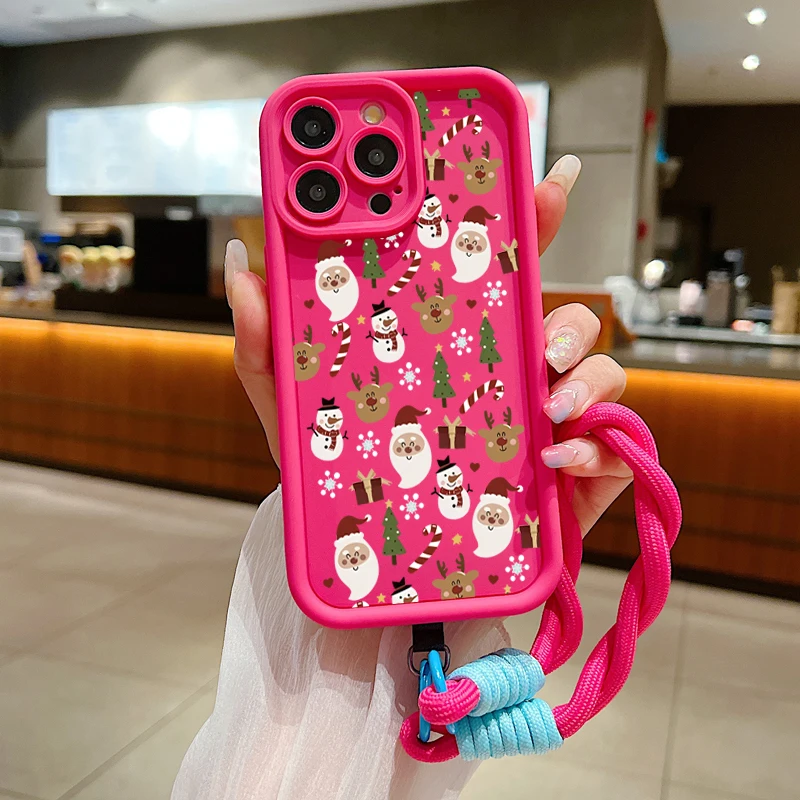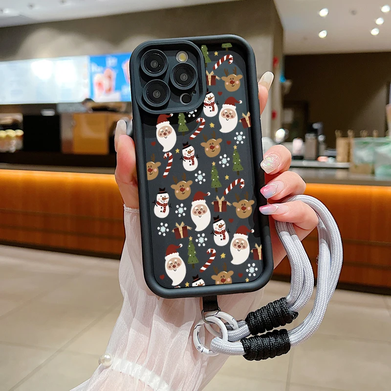 Funda de teléfono con cuerda y cordón con patrón de Feliz Navidad para iPhone 17 16 15 14 13 12 11 Pro Max X XS XR 7 8 Plus 16E funda suave de silicona