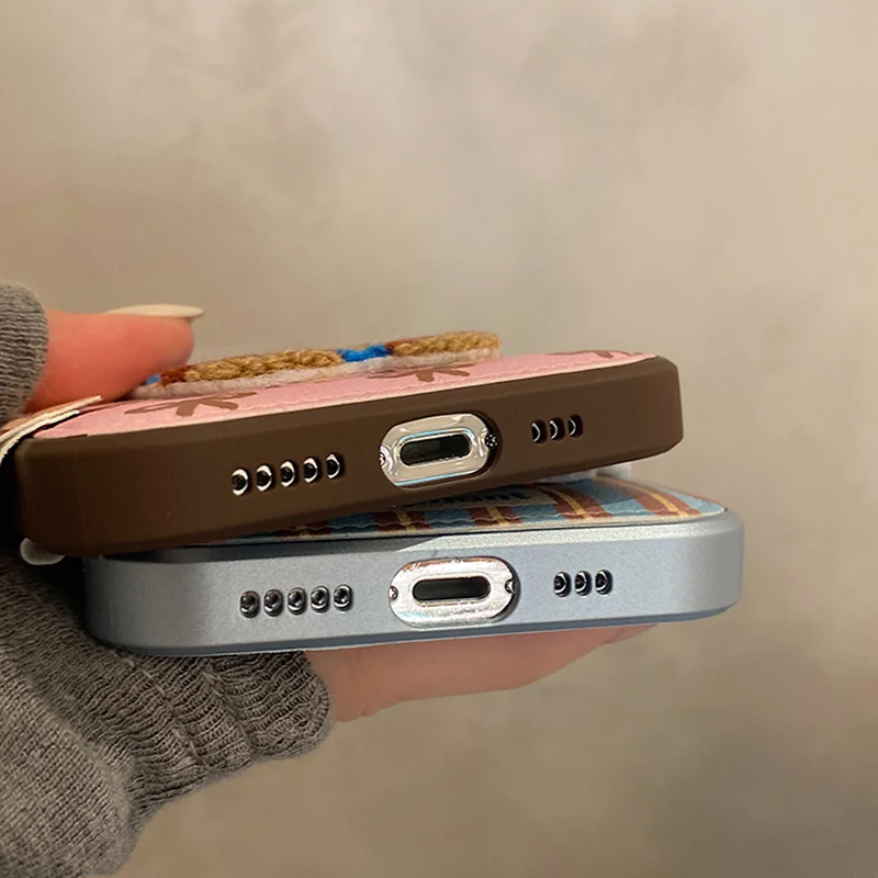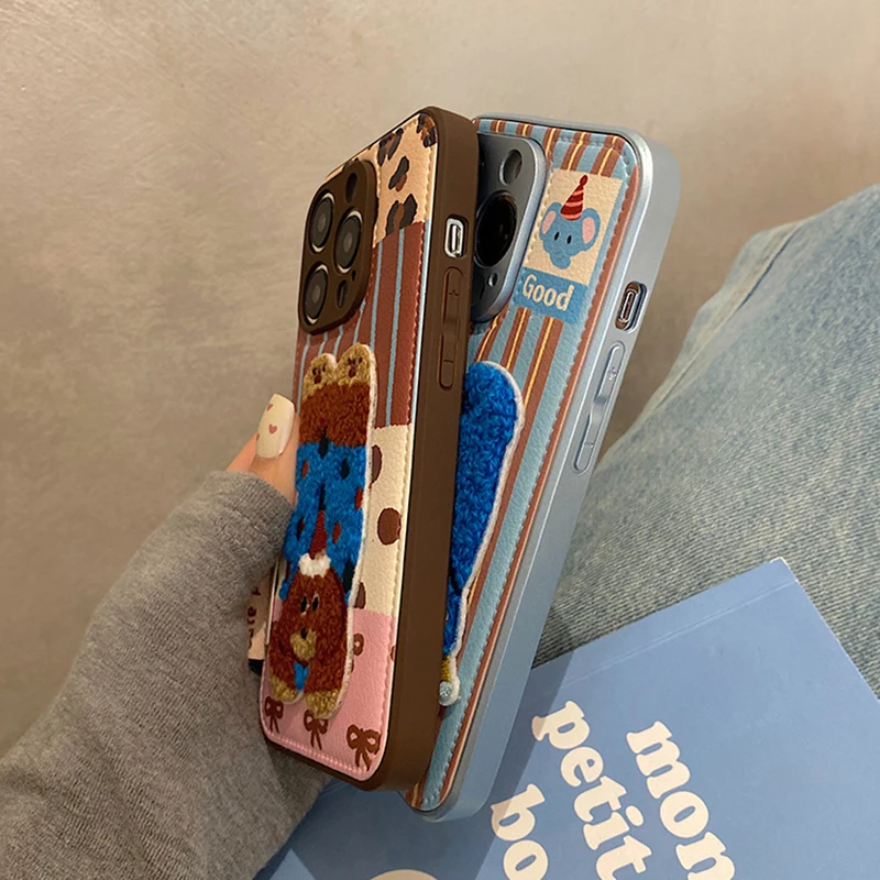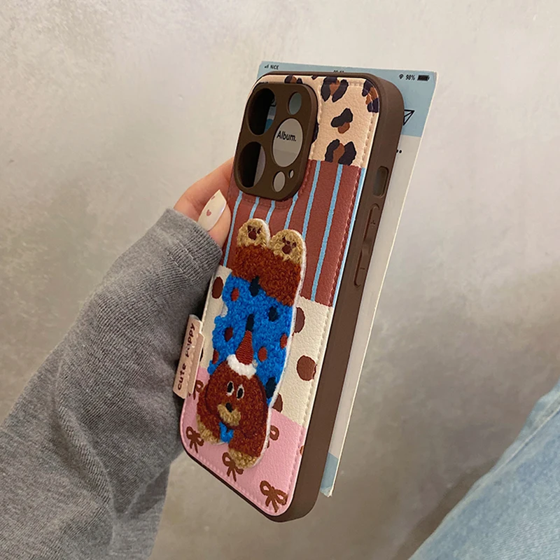 Cartoon Cute 3D Plush Elephant Puppy Drum Bag Leather Phone Case For iPhone 16 15 13 14 11 12 Pro Max Cover