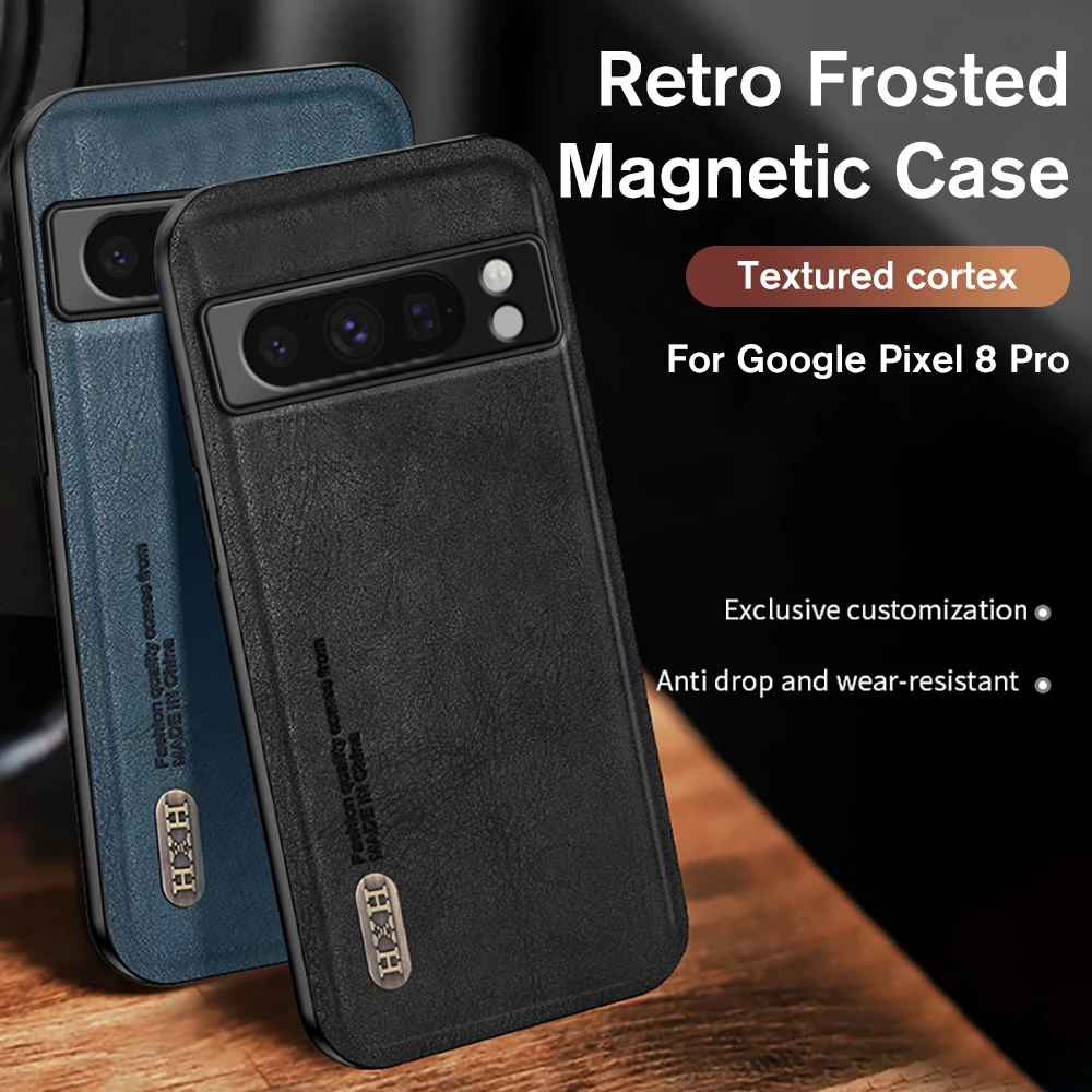Funda de teléfono de cuero Retro esmerilado de lujo para Google Pixel 8 Pro, Funda de succión magnética para coche Gogle Pixel 7A 8A 7 7Pro 8Pro 5G, Funda