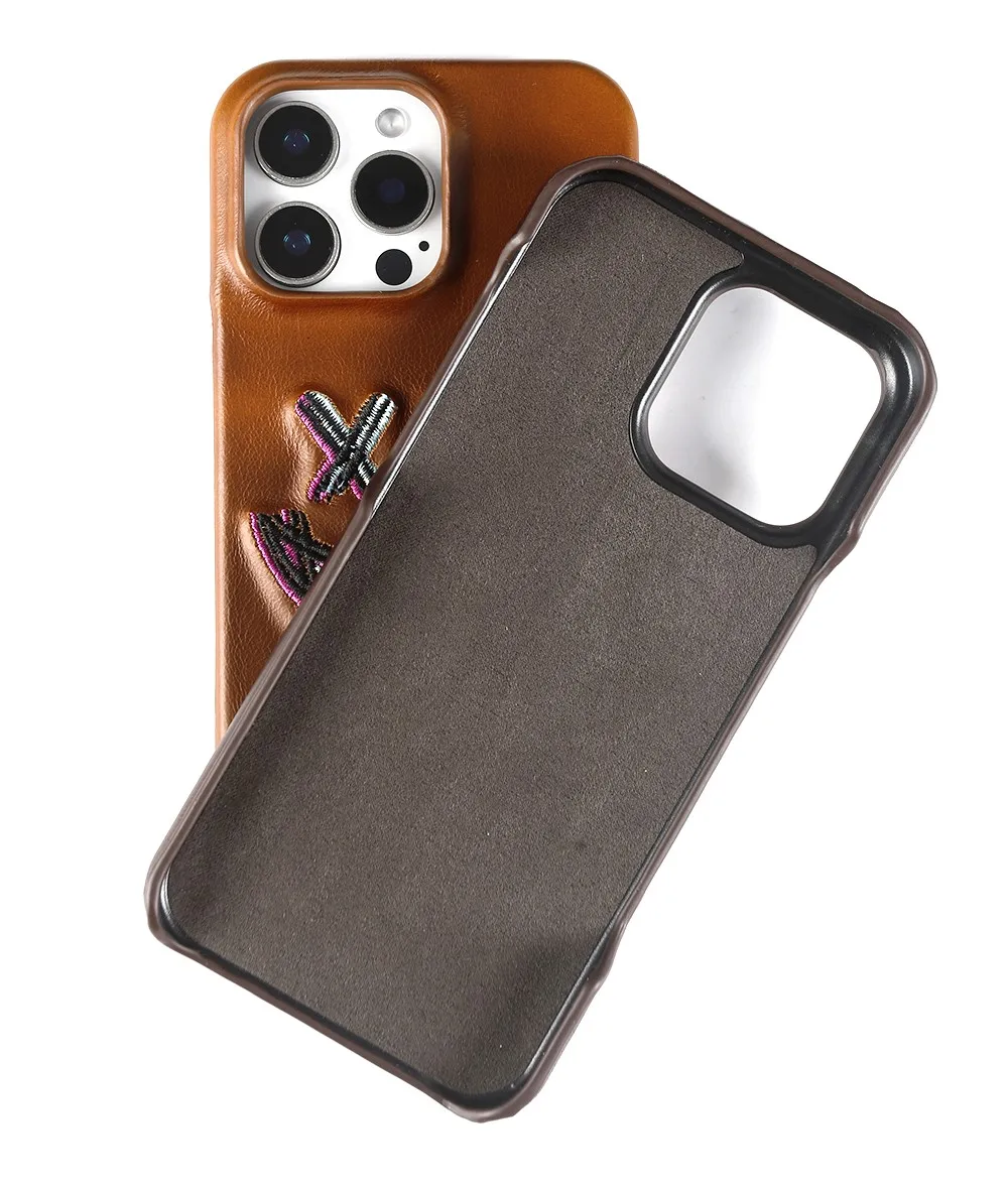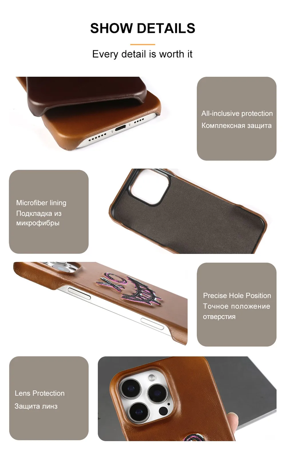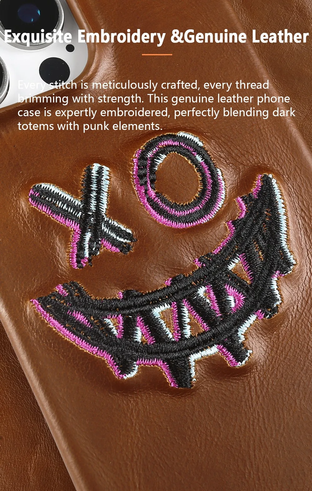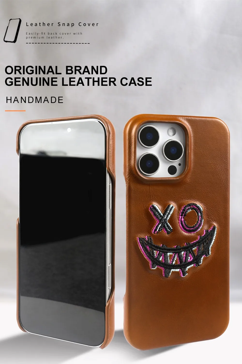 Funda de teléfono de cuero genuino con bordado Retro para Iphone 16 Pro Max, fundas 15 13pro 14 12 11, funda protectora trasera Vintage estética