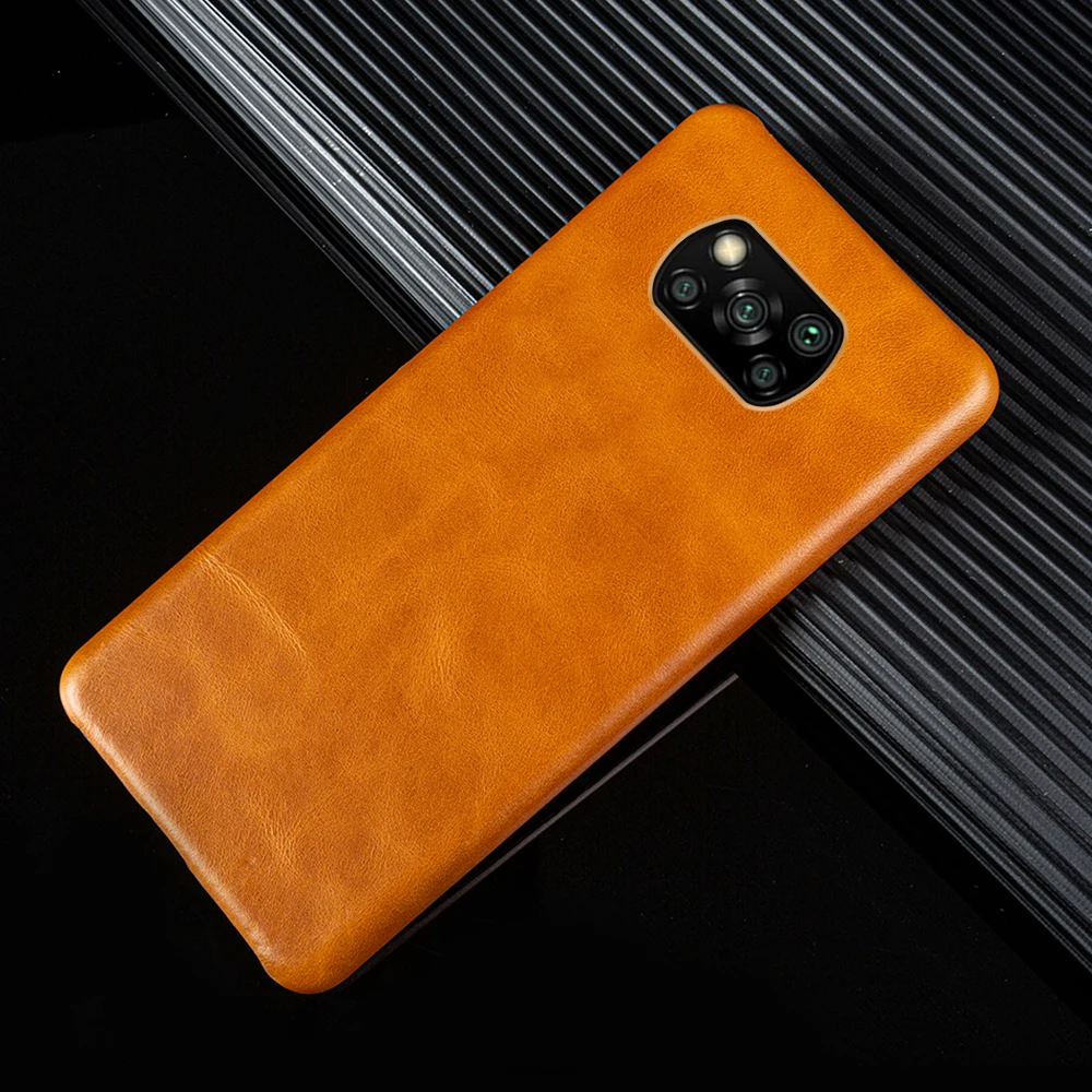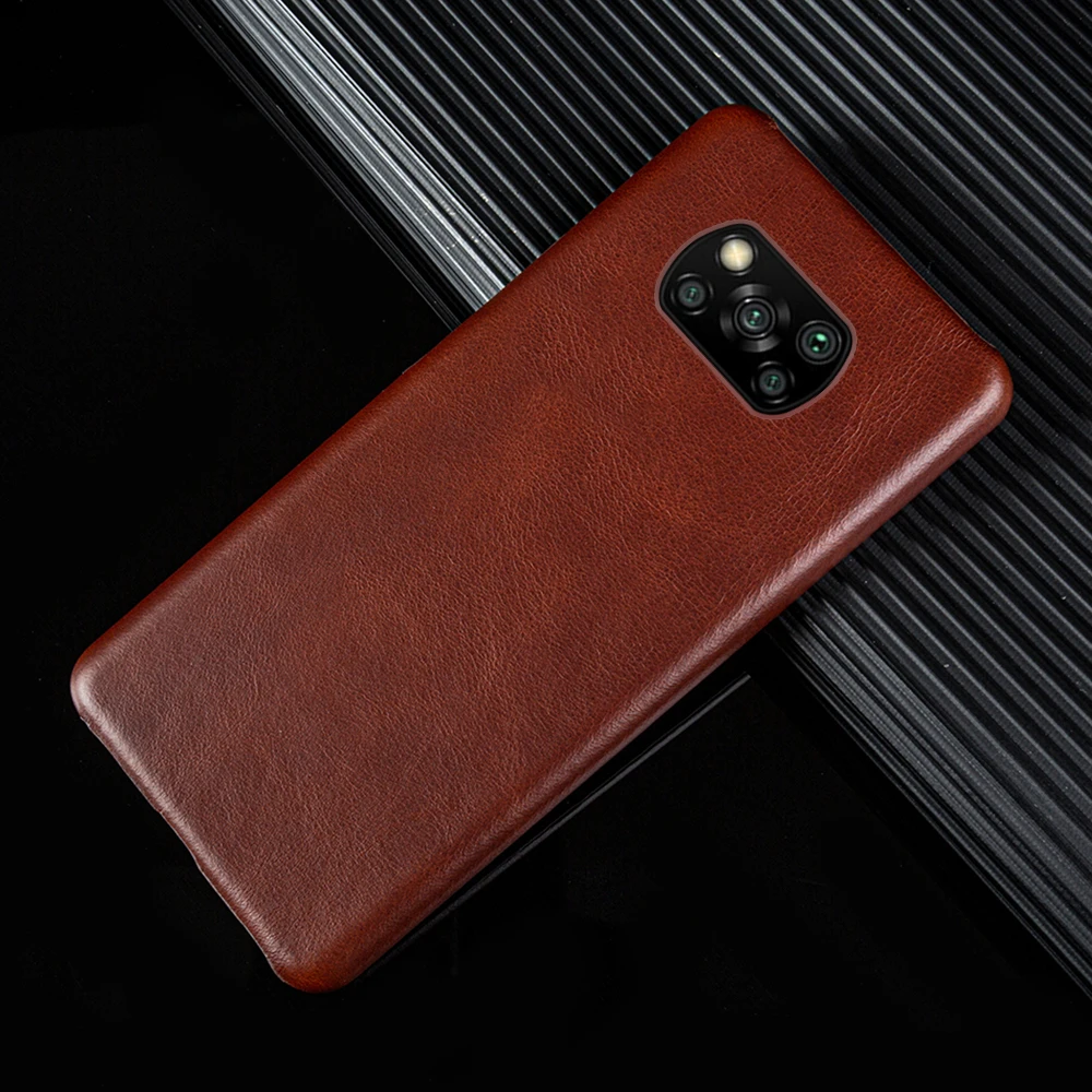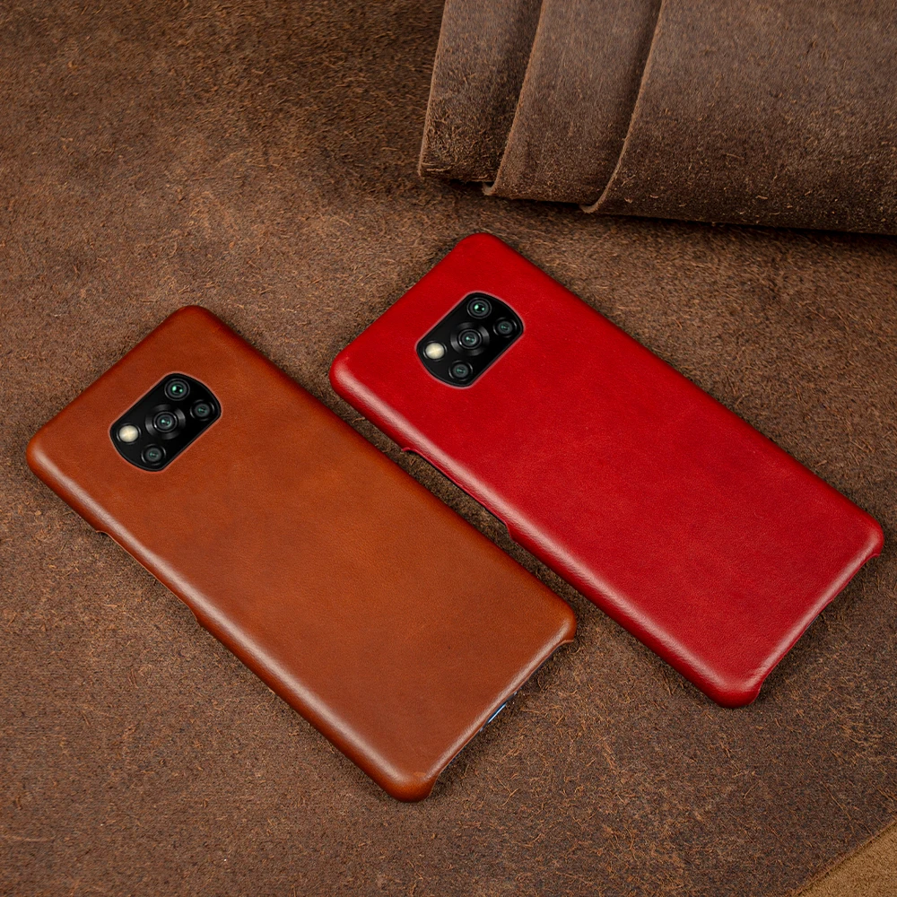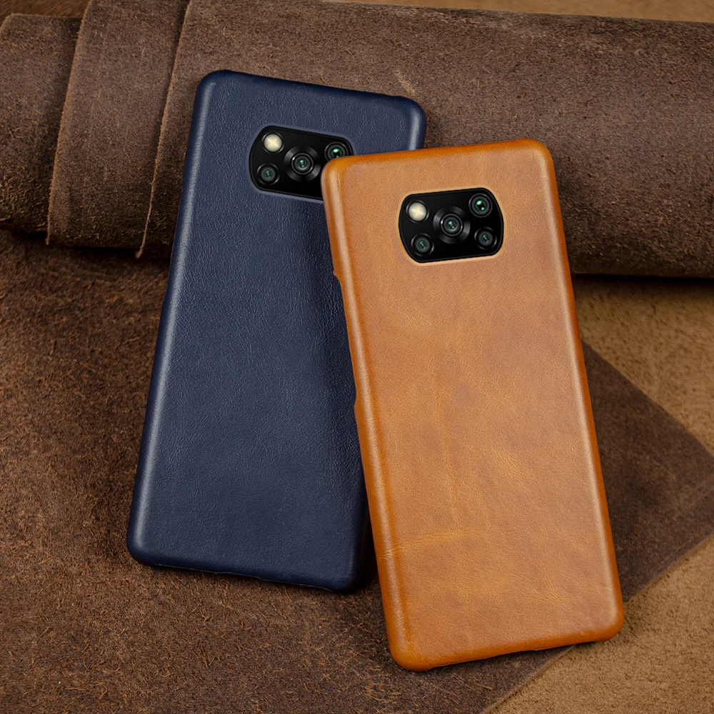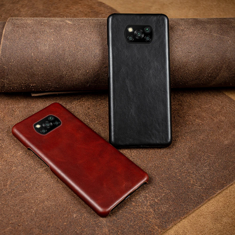 For Xiaomi Poco Series Genuine Leather Phone Case Cover Hand Made Oil Wax Pattern X3 X4 M3 M4 M5 F1 F2 F3 F3GT F4 F4GT C40 C50