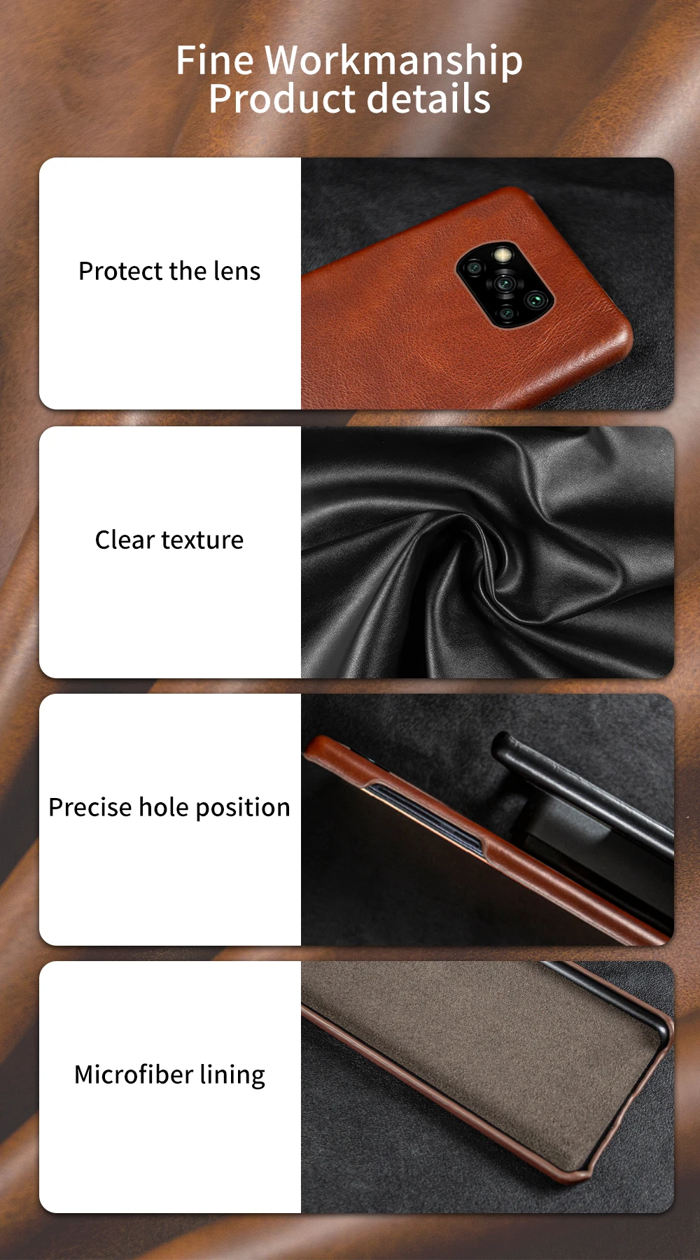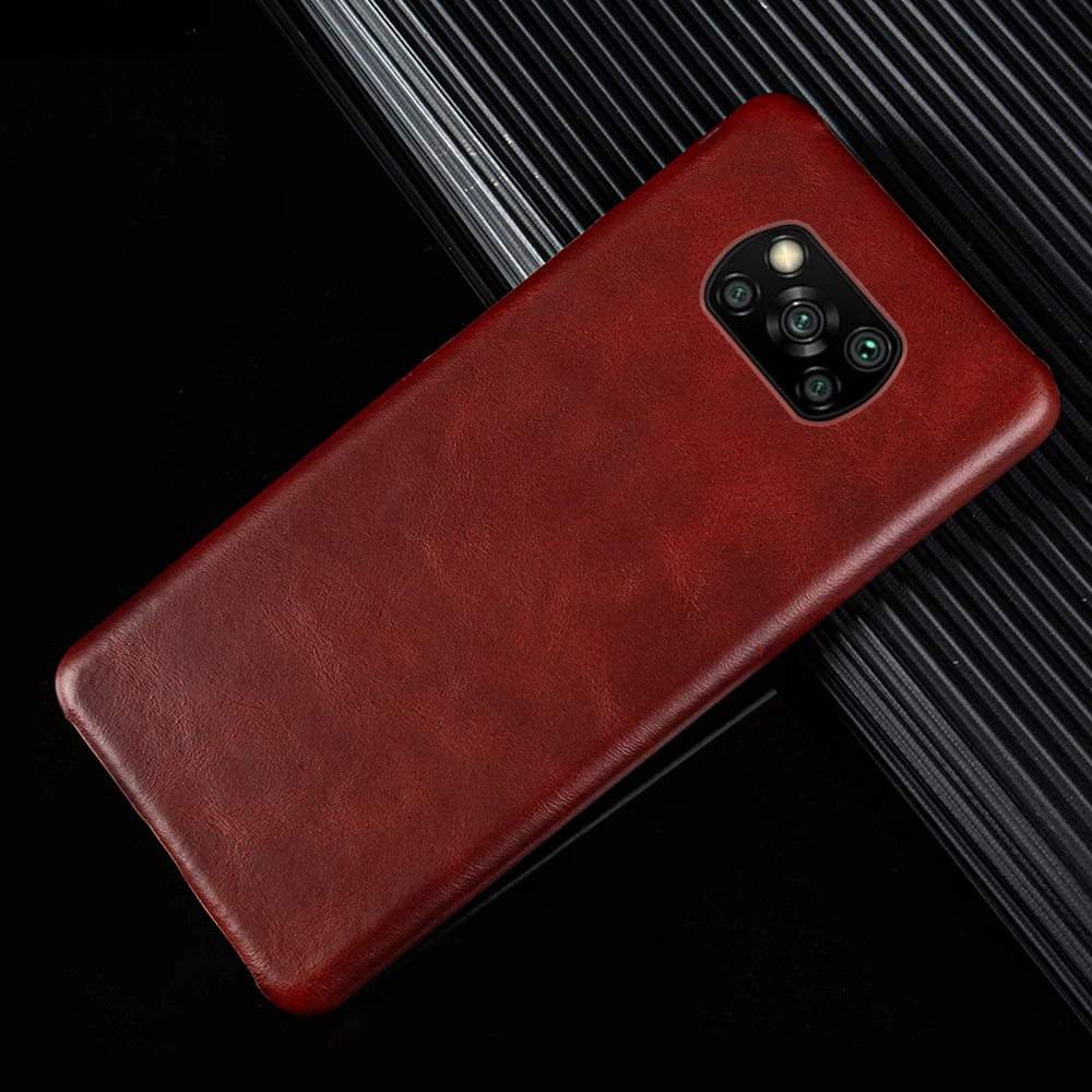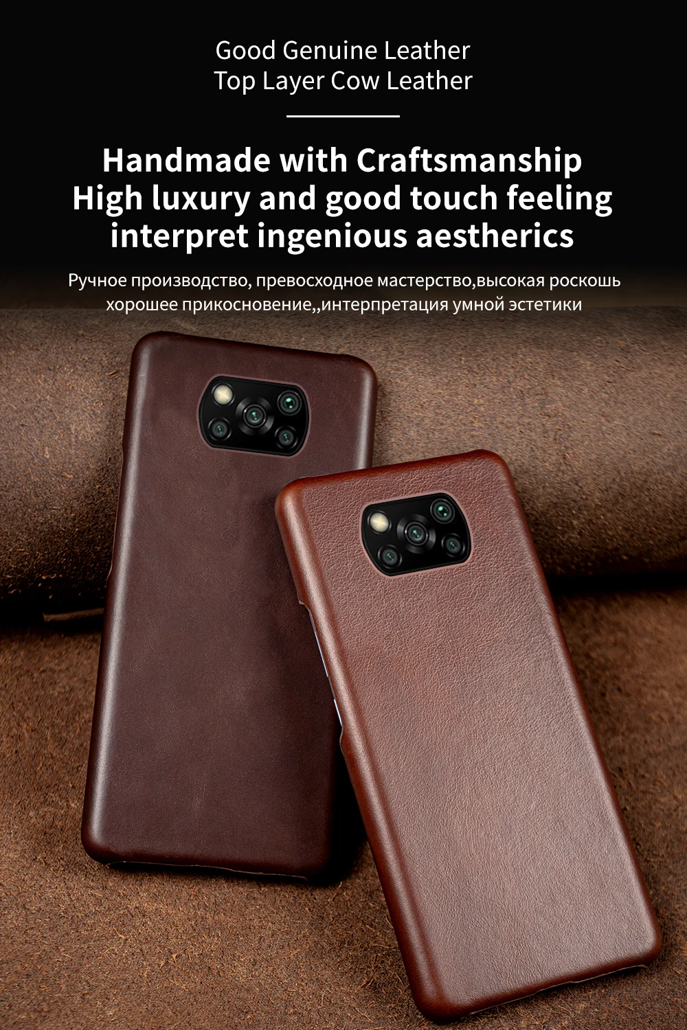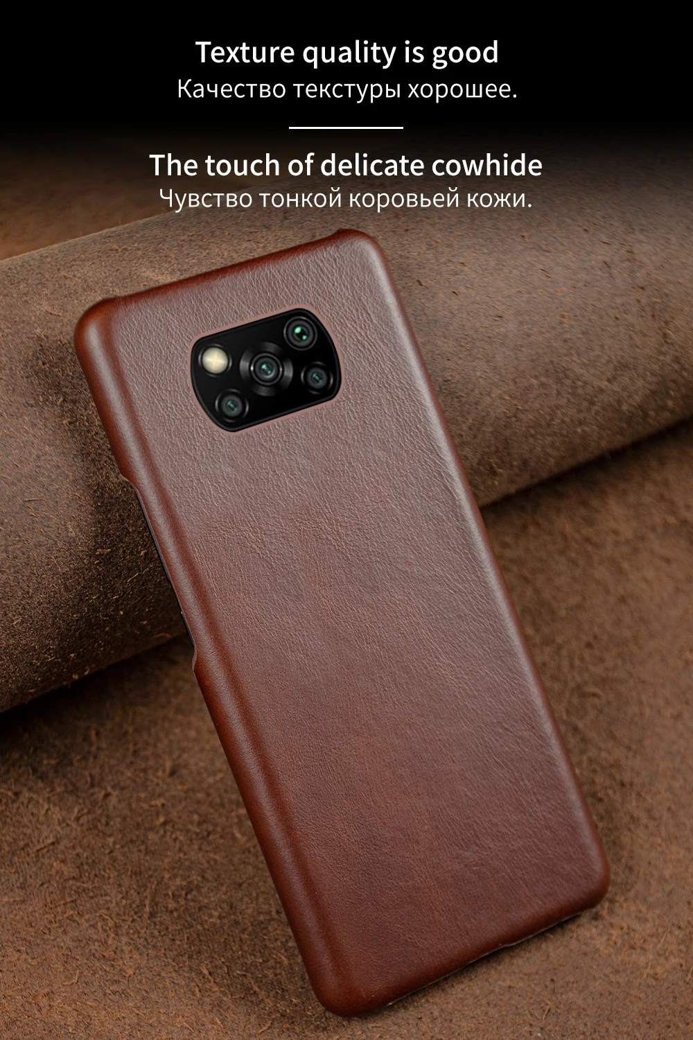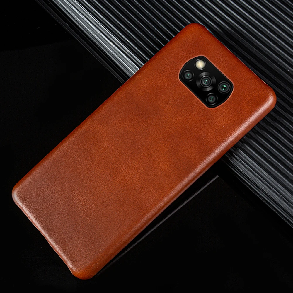 For Xiaomi Poco Series Genuine Leather Phone Case Cover Hand Made Oil Wax Pattern X3 X4 M3 M4 M5 F1 F2 F3 F3GT F4 F4GT C40 C50