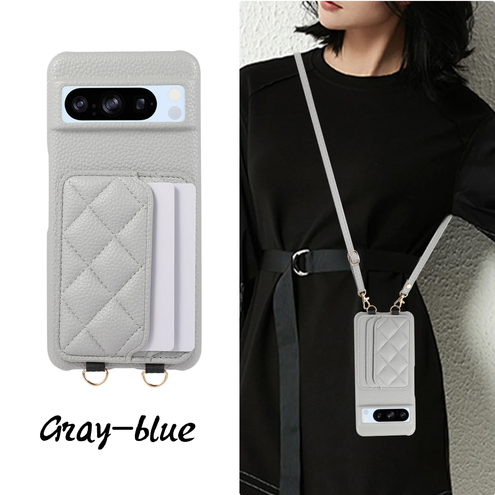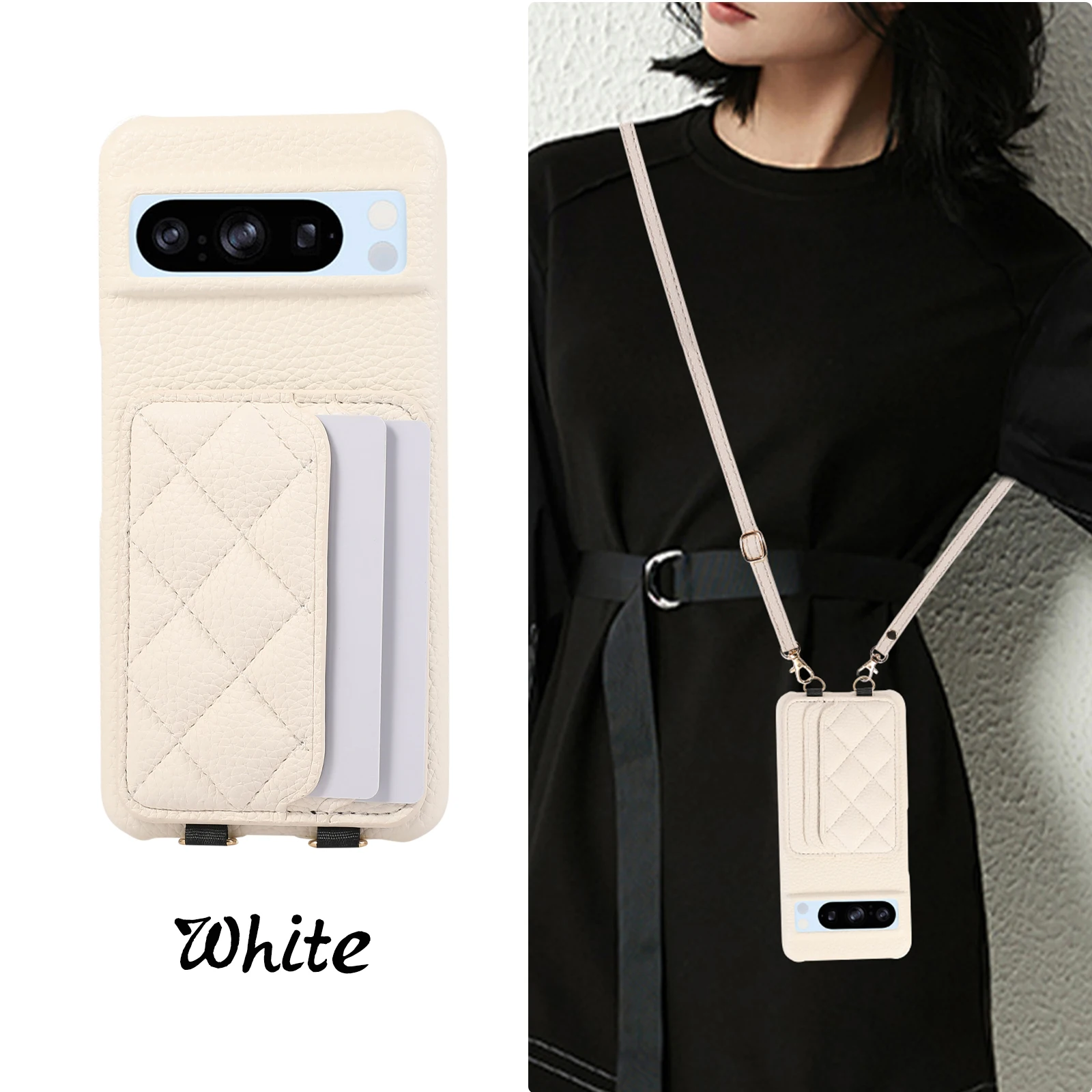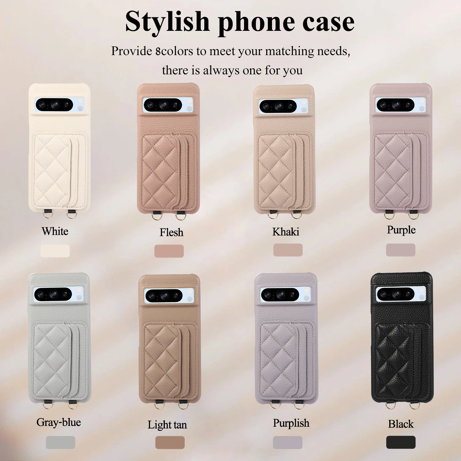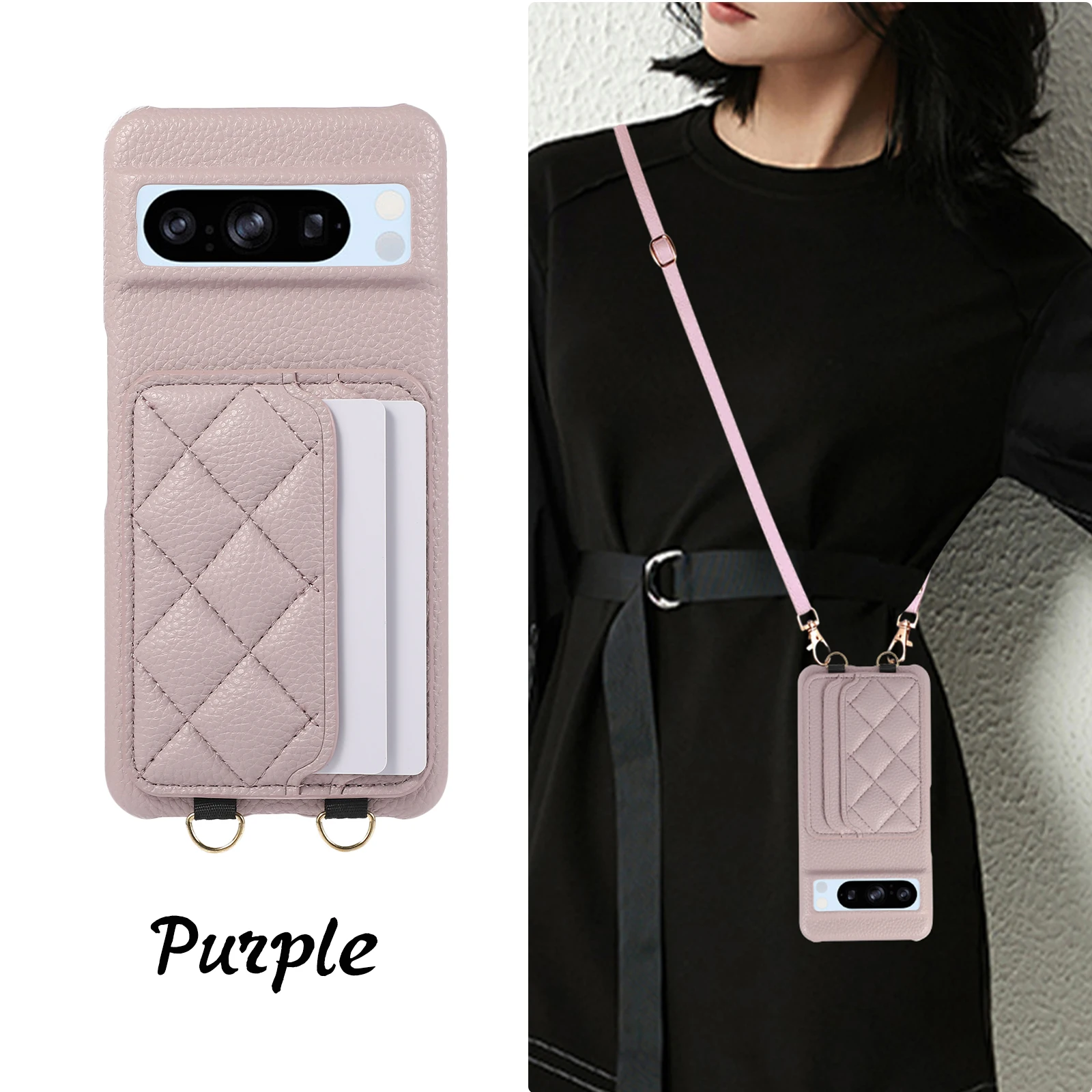 Comprar Funda de teléfono de cuero para Google Pixel 8 Pro 8A 7A 7Pro, funda de bolsillo a cuadros con cordón largo para tarjetas cruzadas