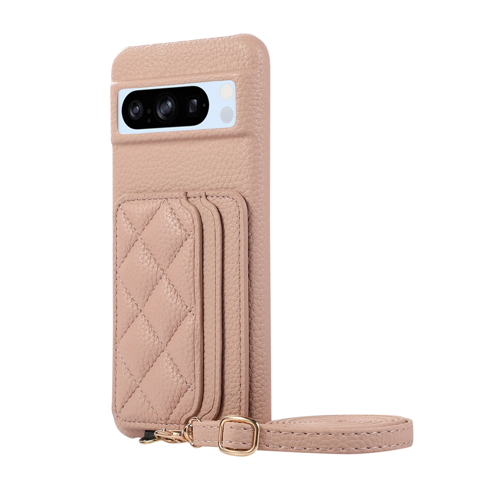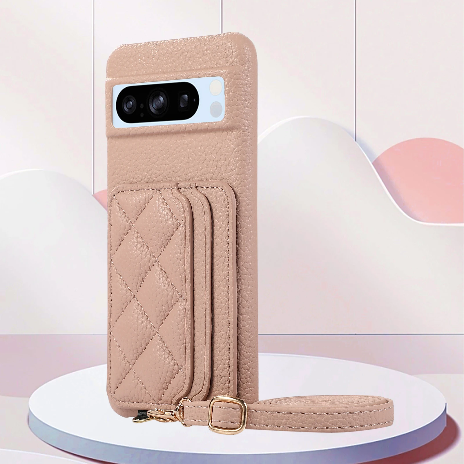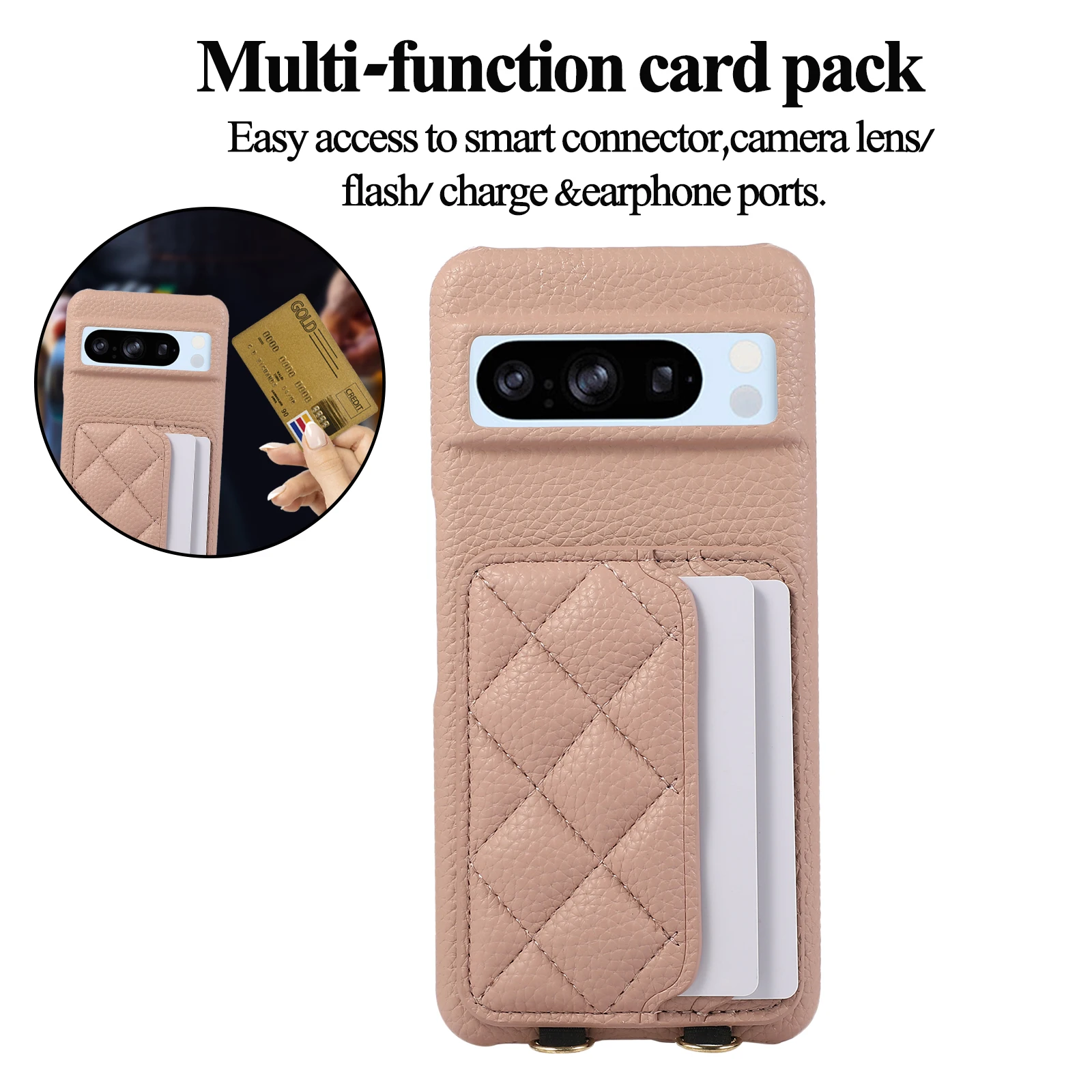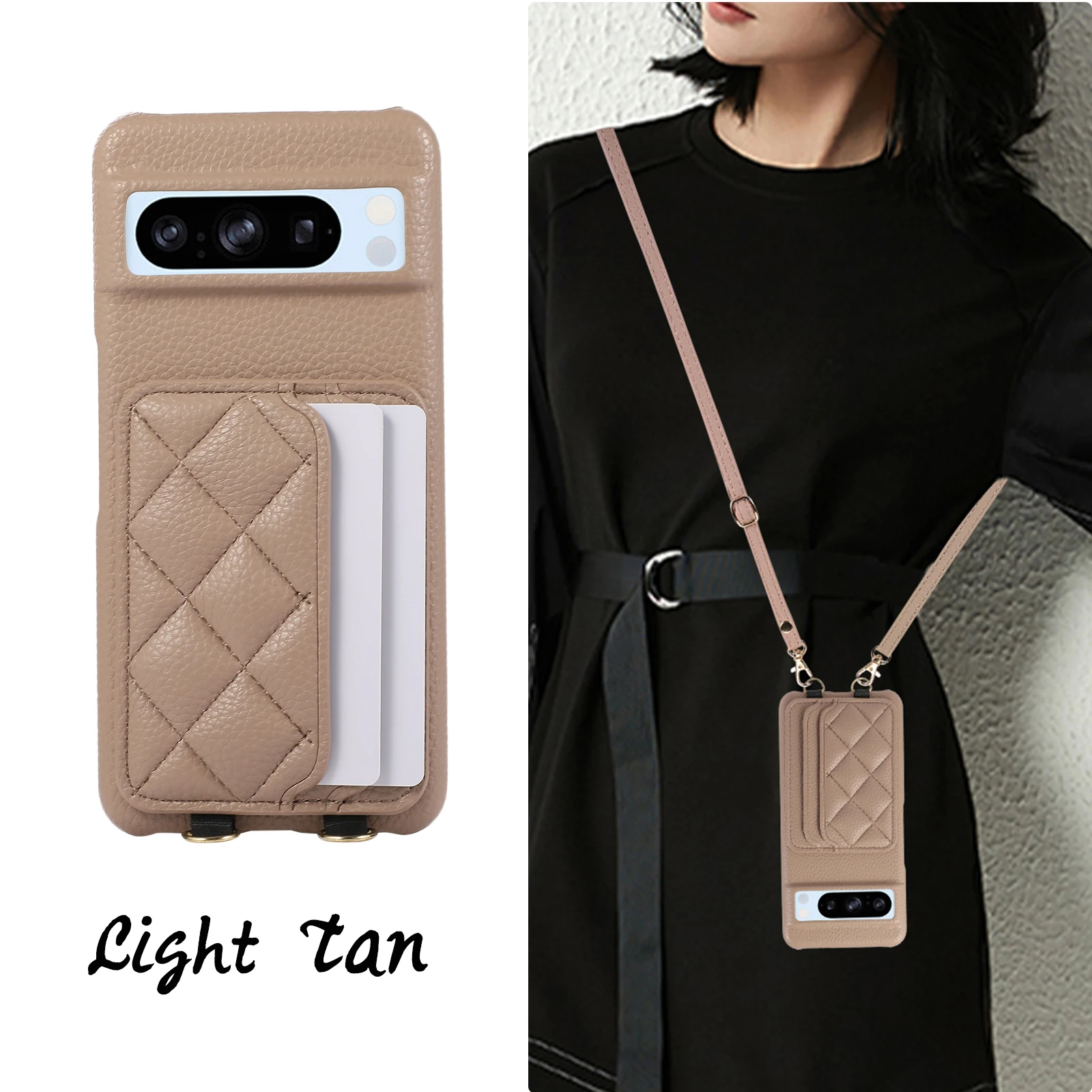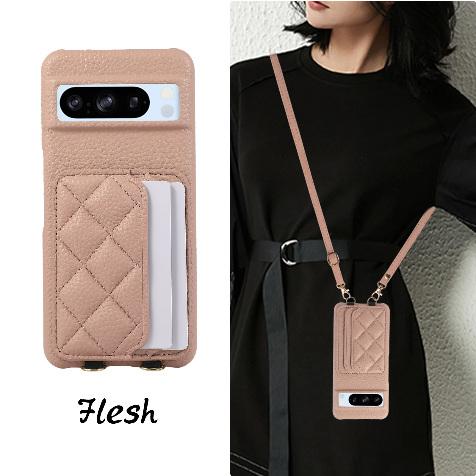 Comprar Funda de teléfono de cuero para Google Pixel 8 Pro 8A 7A 7Pro, funda de bolsillo a cuadros con cordón largo para tarjetas cruzadas