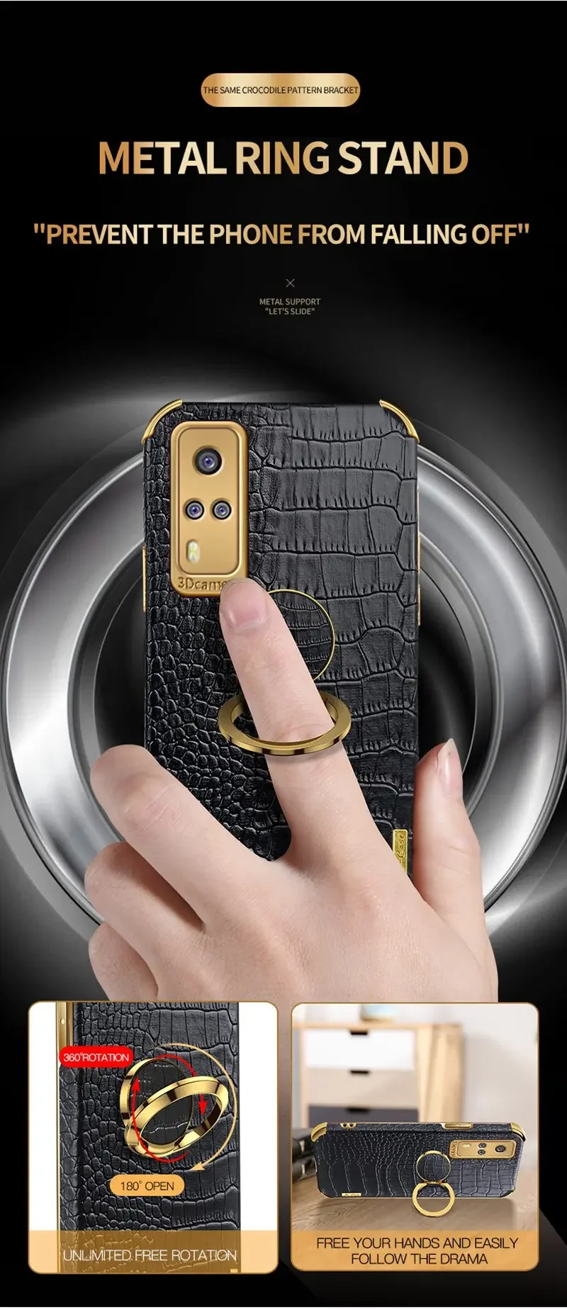 Funda de cuero de lujo para teléfonoVivo Y51 Y31 Y72 Y73 Y20 Y30 Y20S Y12S Y70Funda de TPU para anilloVivo S1 Pro V21 V21E iQOO Z3