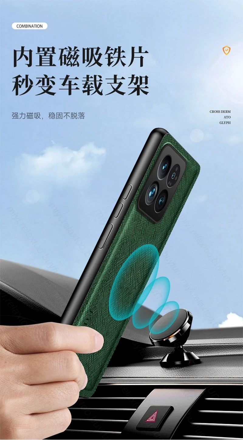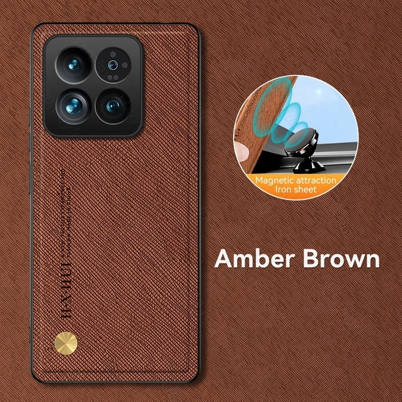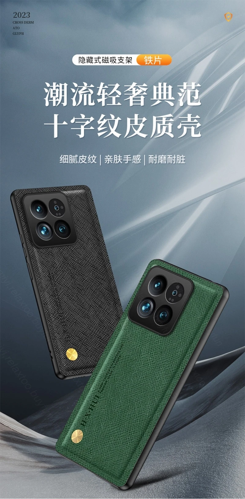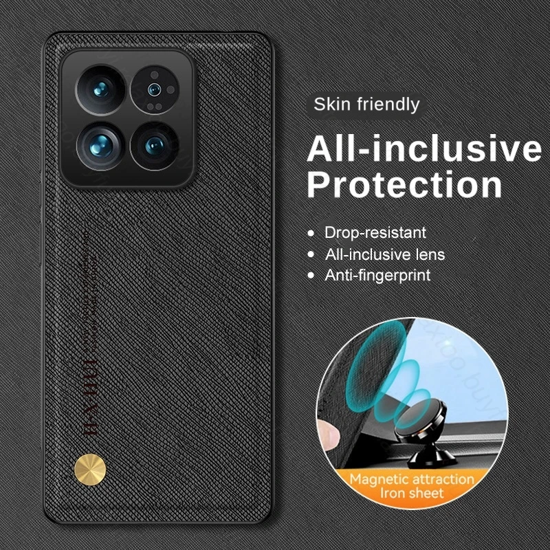 Funda de teléfono de cuero con patrón cruzado para Xiaomi 14 Xiomi Xaomi Mi14 Mi 14 Pro 5G soporte magnético a prueba de golpes