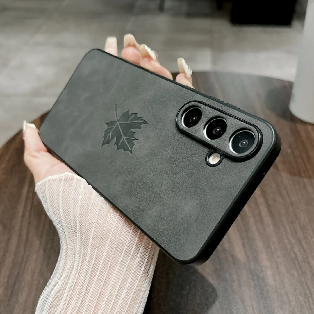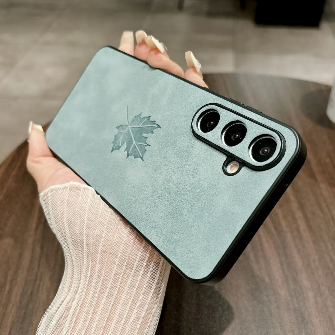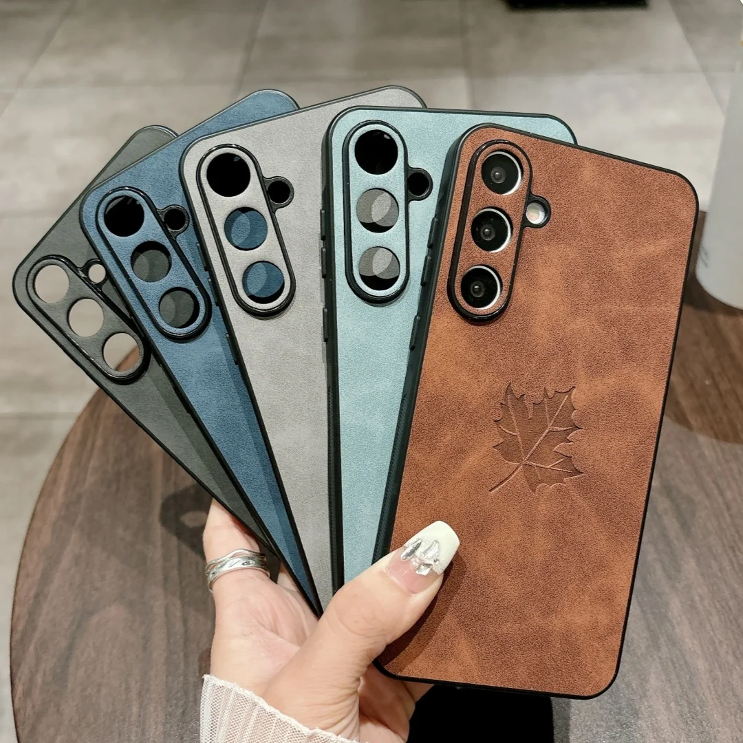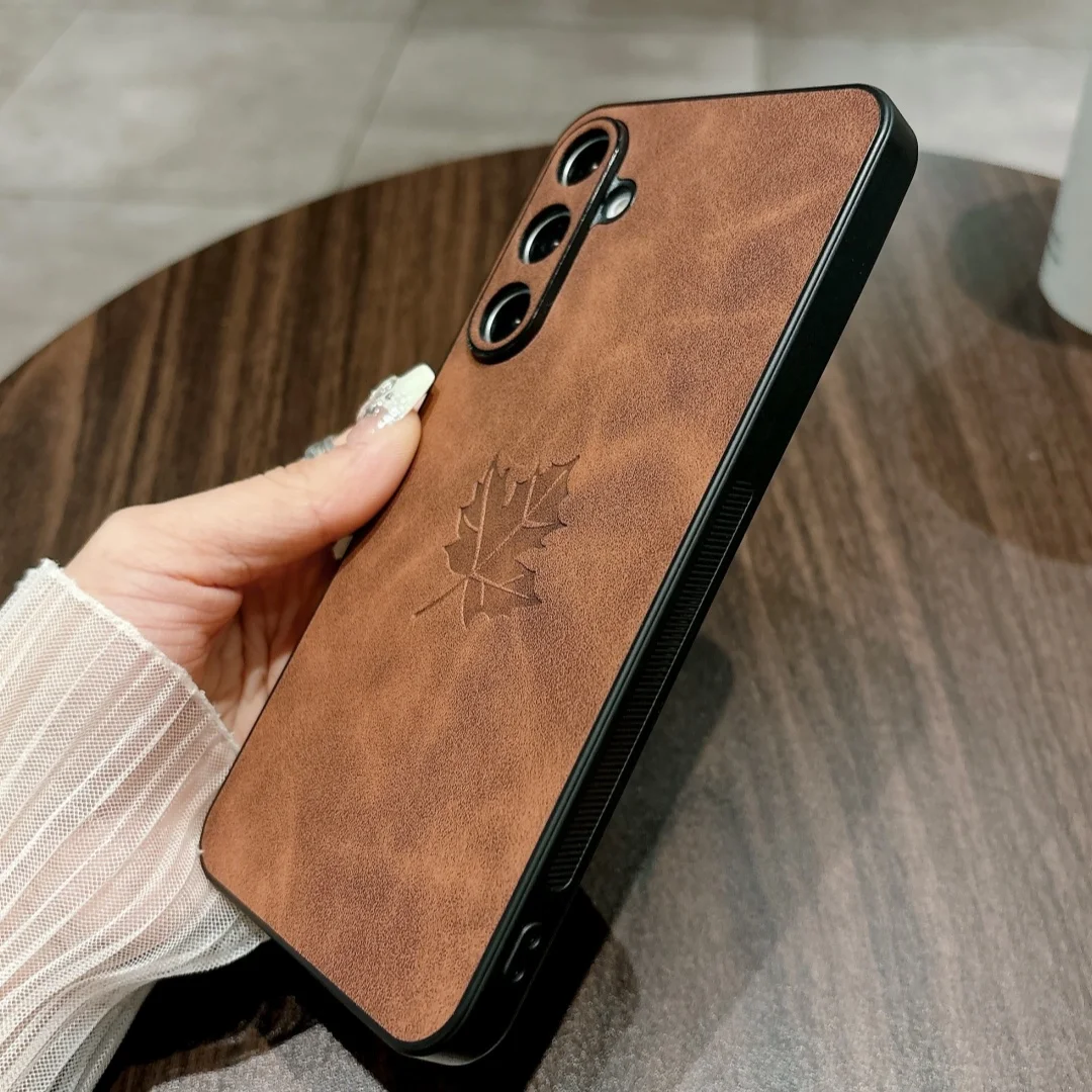 Funda de teléfono de cuero PU con patrón de hoja de arce Retro para Samsung Galaxy A56 A36 A26 A16 A55 A53 A52 A35 A34 A25 M12 Funda de silicona