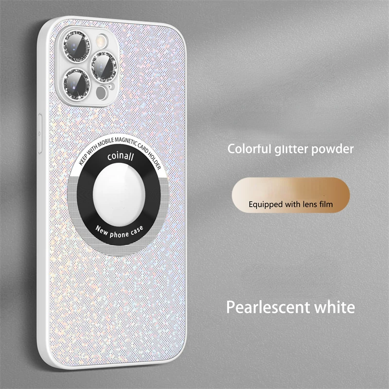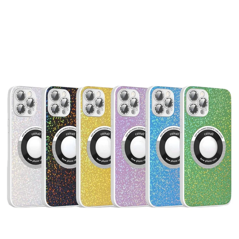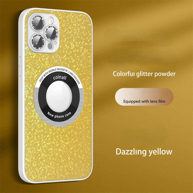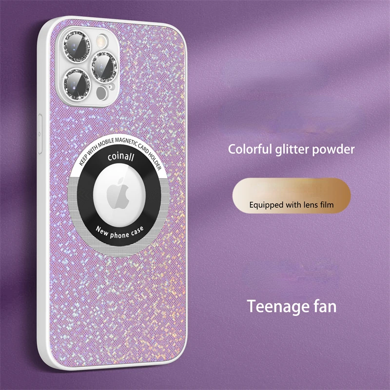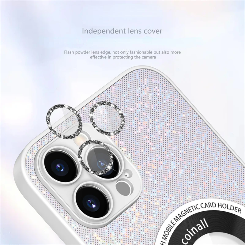 Comprar Funda de teléfono de cuero PU con purpurina para Iphone, 11, 12, 13, 14 Pro Max, lente de cristal para Iphone 12, 13pro, 14 Pro Max, cubierta antideslizante a prueba de golpes