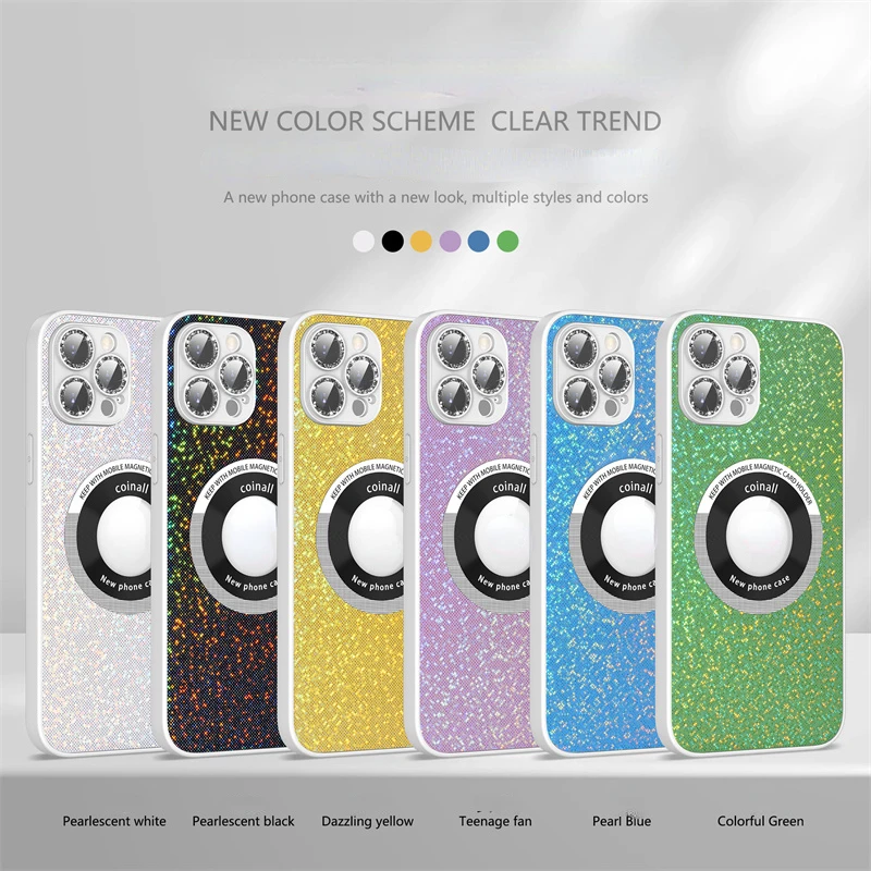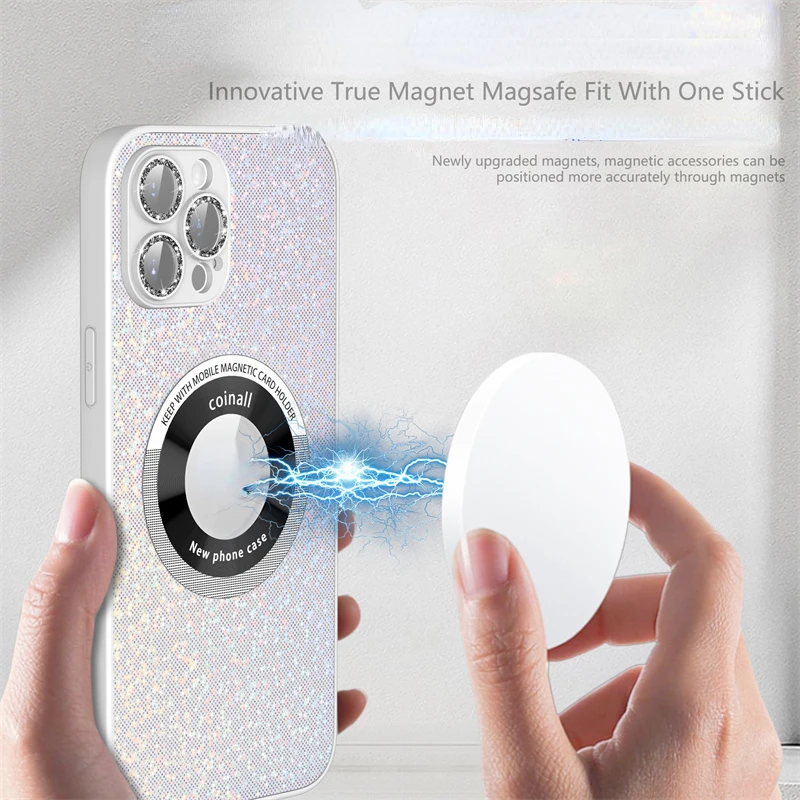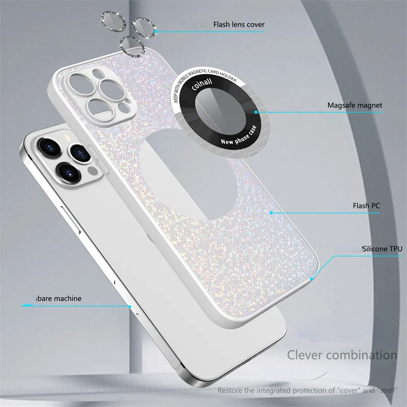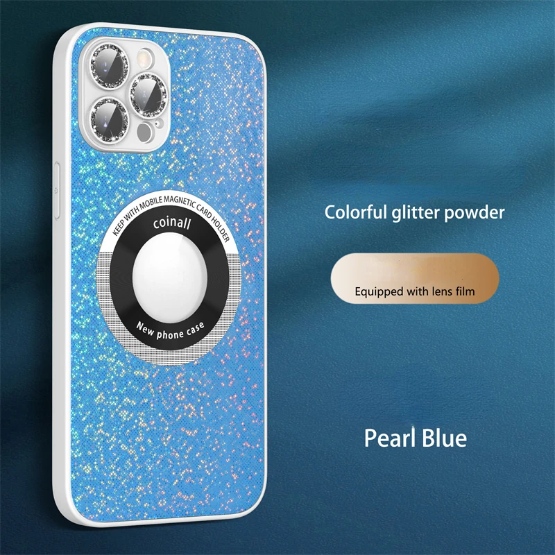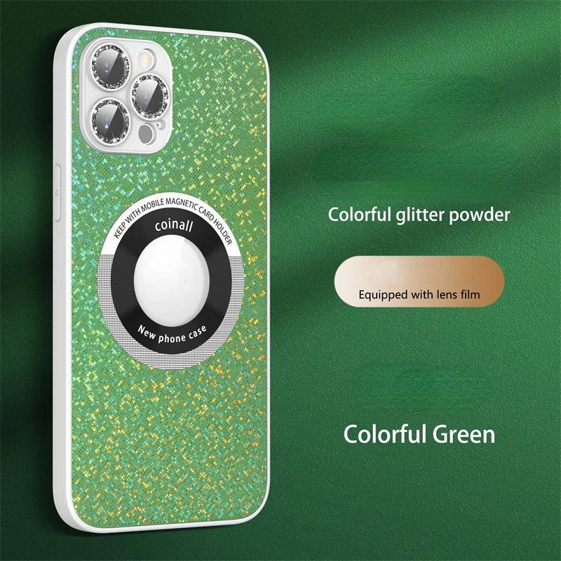 Comprar Funda de teléfono de cuero PU con purpurina para Iphone, 11, 12, 13, 14 Pro Max, lente de cristal para Iphone 12, 13pro, 14 Pro Max, cubierta antideslizante a prueba de golpes