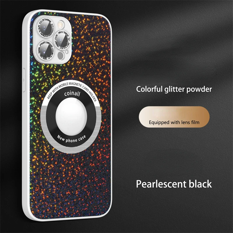 Funda de teléfono de cuero PU con purpurina para Iphone, 11, 12, 13, 14 Pro Max, lente de cristal para Iphone 12, 13pro, 14 Pro Max, cubierta antideslizante a prueba de golpes