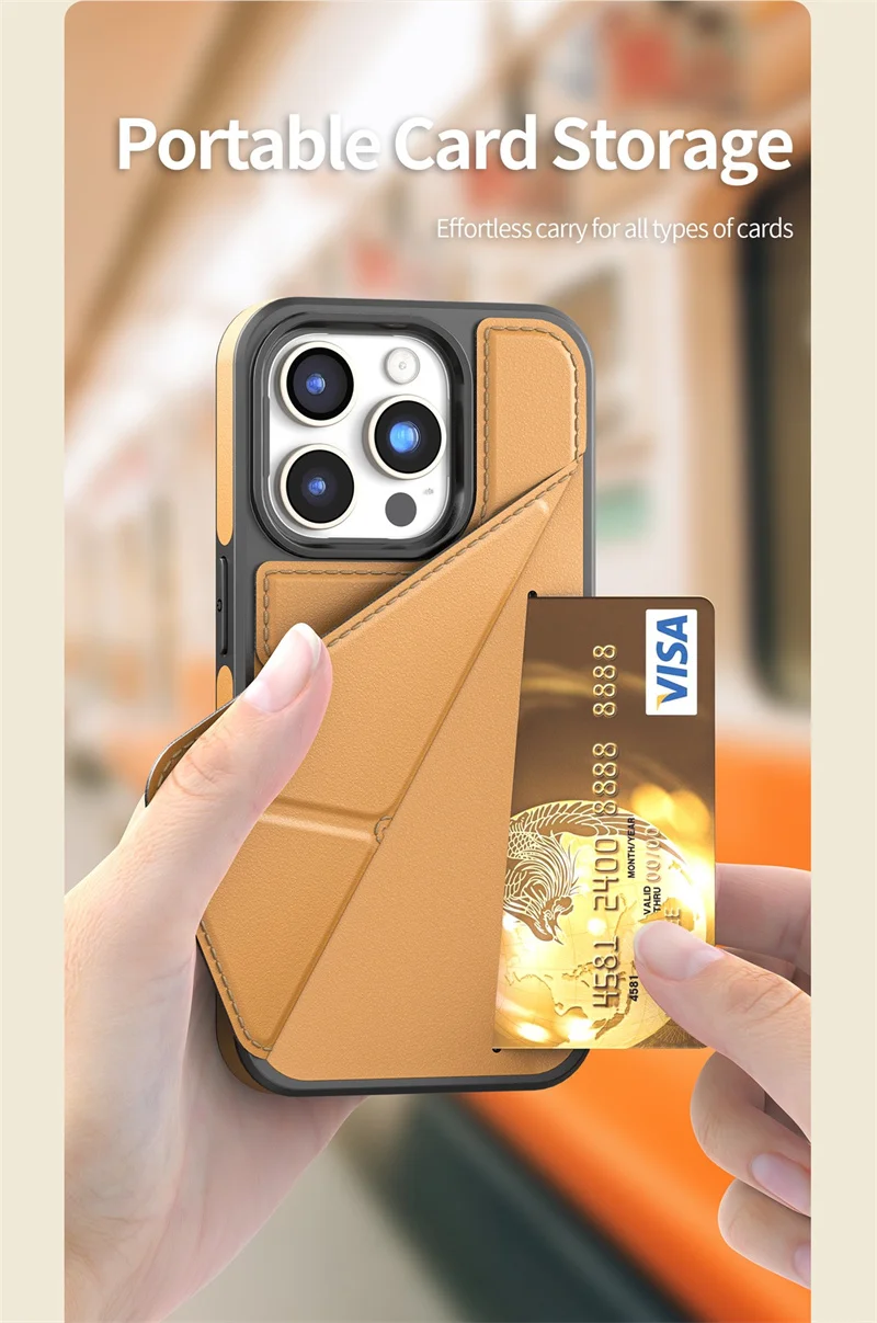 Comprar Funda de teléfono de cuero PU con ranura para tarjeta, carcasa protectora a prueba de golpes para iPhone 16, 15, 14, 13, 12, 11 Pro Max Plus
