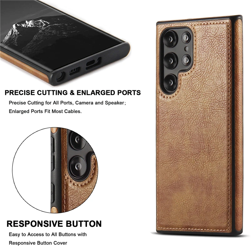 Funda de teléfono de cuero PU para Samsung Galaxy S22, S23, S24 Ultra, S24, S23, S22 Plus, cubierta trasera de teléfono parachoques a prueba de golpes de negocios suave, nueva