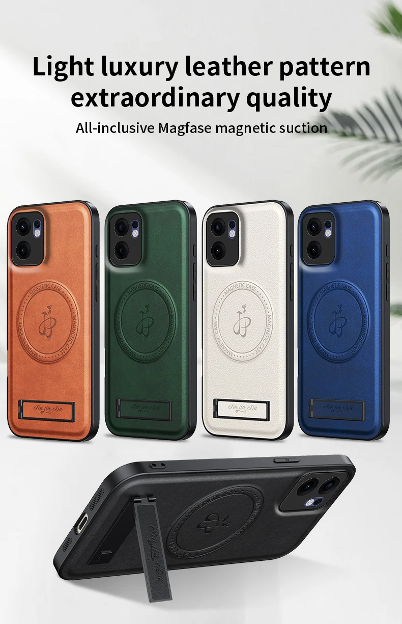 Funda de teléfono de cuero PU con soporte magnético para Magsafe Oppo Reno 13 Pro 13F A5 Pro, cubierta con logotipo de carga inalámbrica