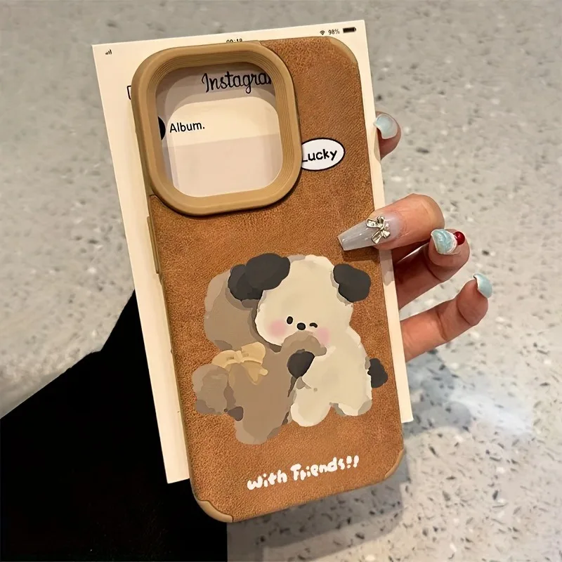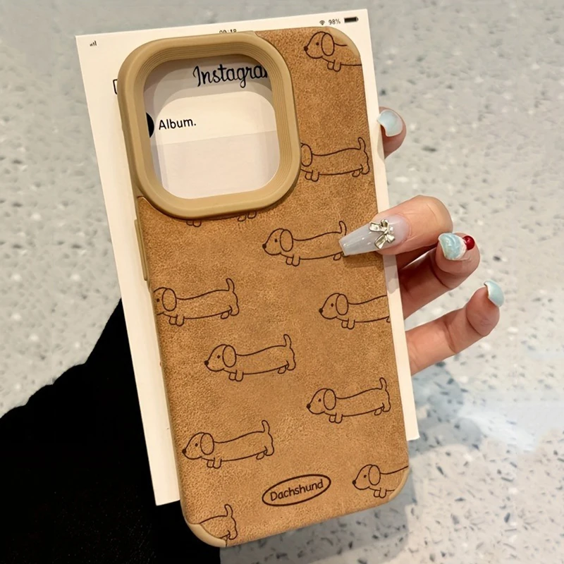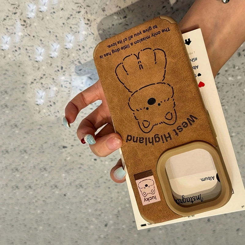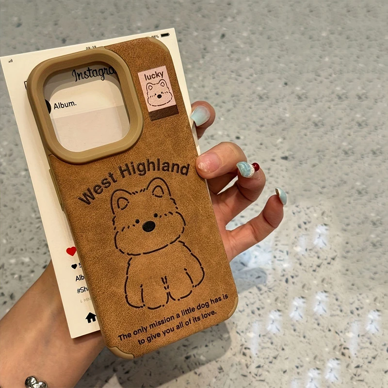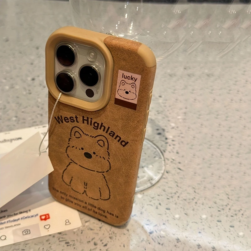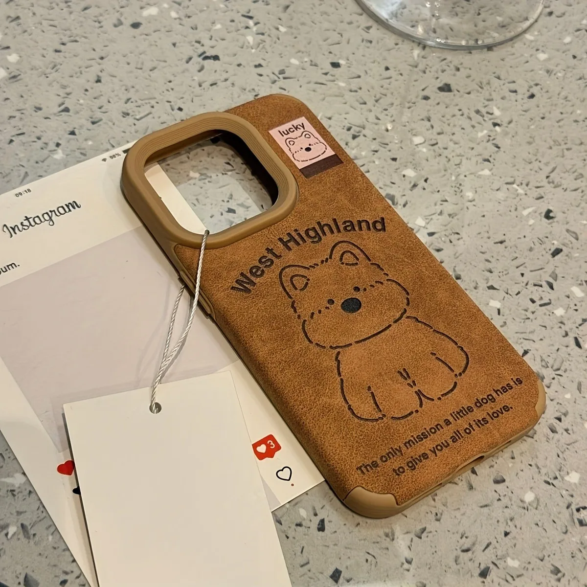 Comprar Funda de teléfono de cuero regenerado con perro West Highland Dachshund para iPhone 16 Pro Max 15 14 Plus 13 12 11 XS X XR contraportada a prueba de golpes