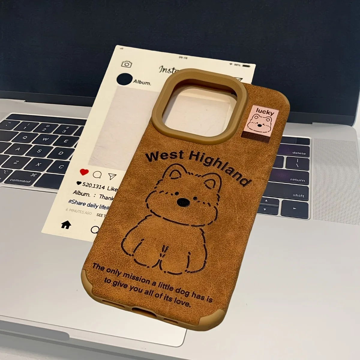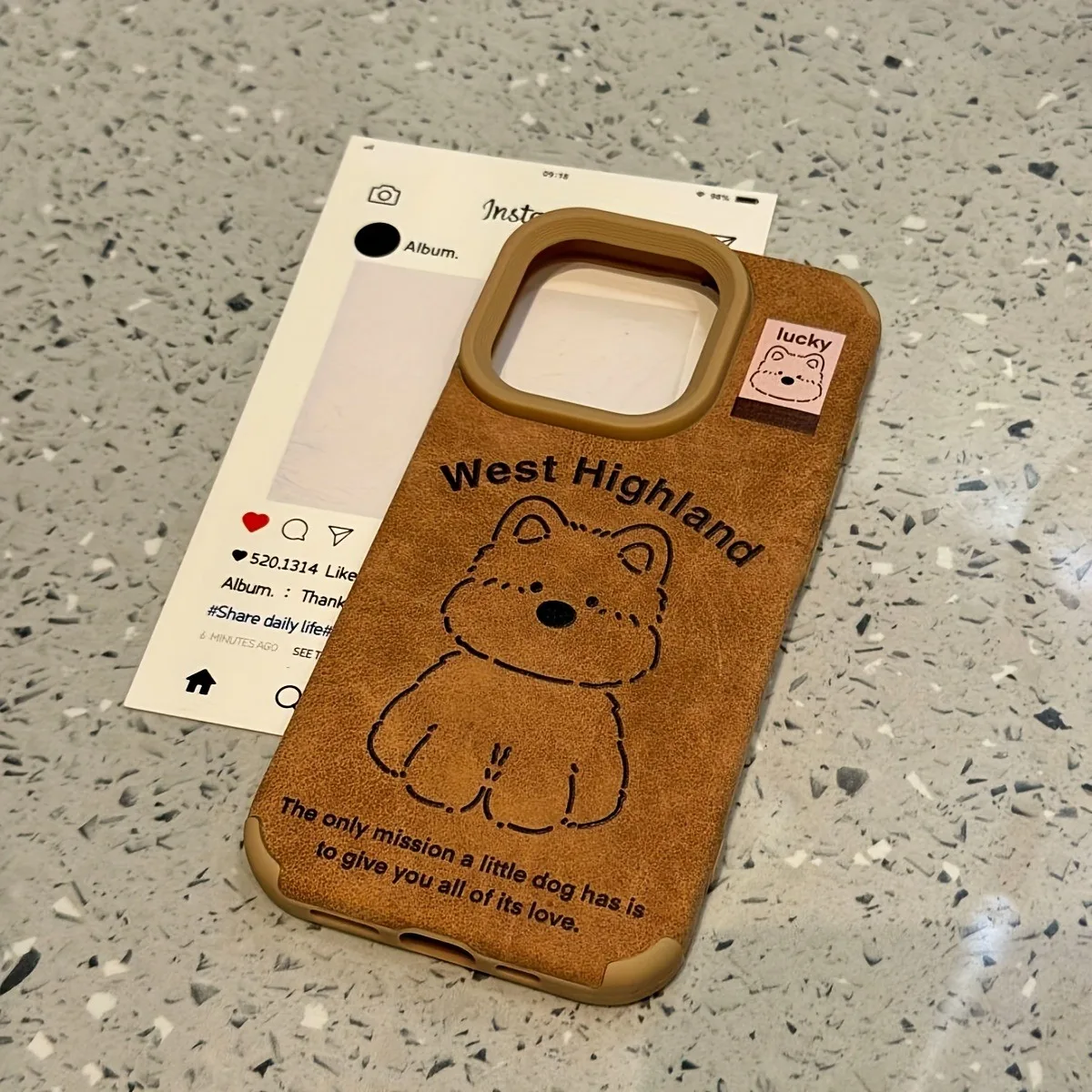 Funda de teléfono de cuero regenerado con perro West Highland Dachshund para iPhone 16 Pro Max 15 14 Plus 13 12 11 XS X XR contraportada a prueba de golpes