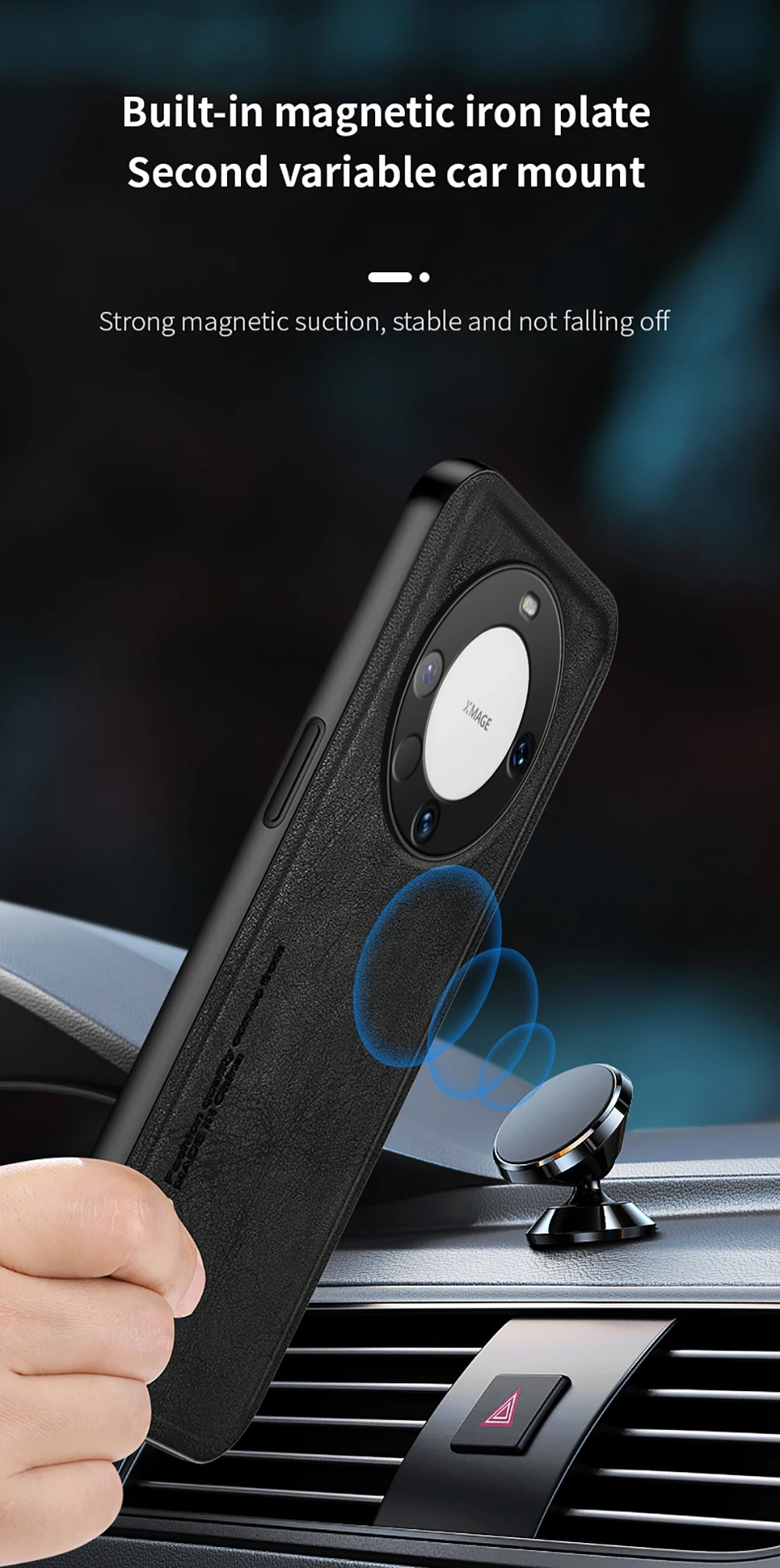 Luxury Frosted Retro Leather Phone Case For Huawei Mate 60 Pro Car Magnetic Suction Cover Huawey Hauwei Mate60 Mate60Pro 60Pro