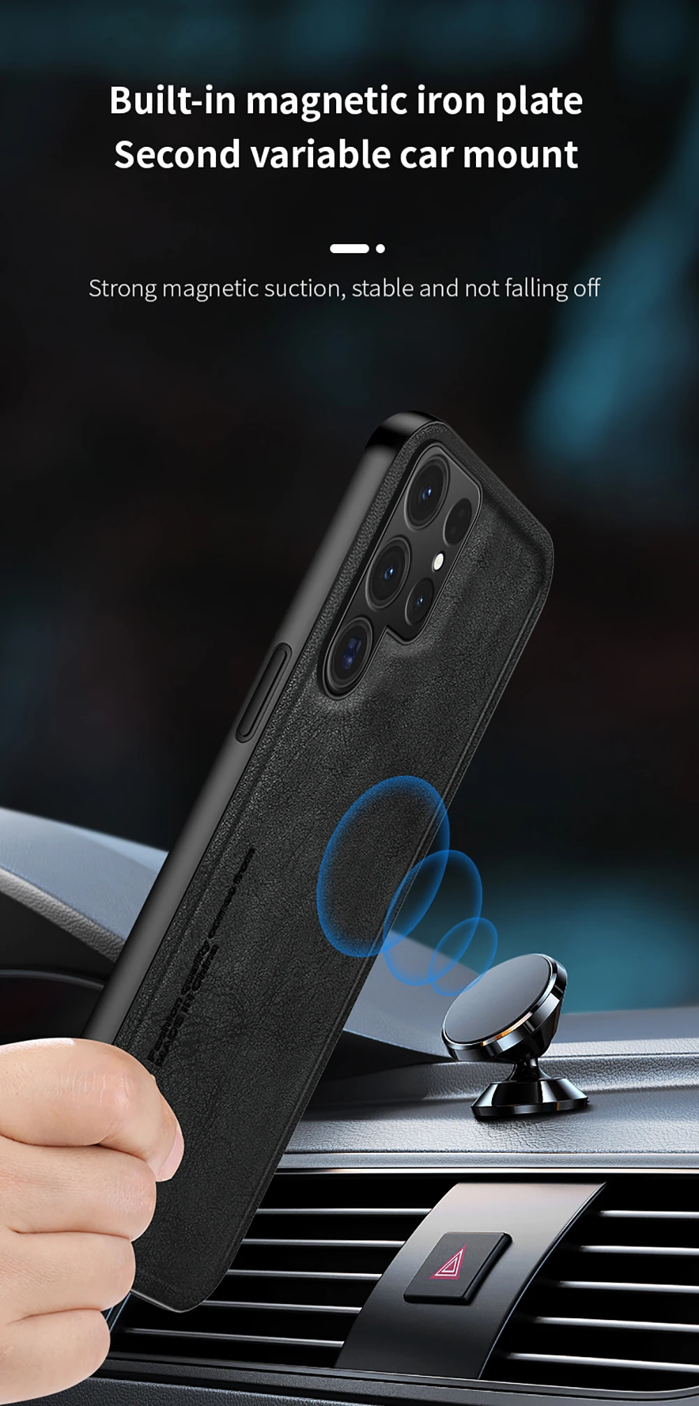 Funda de teléfono de cuero Retro esmerilado de lujo para Samsung Galaxy S23 Ultra cubierta de succión magnética para coche SamsungS23Ultra S23Ultra parachoques