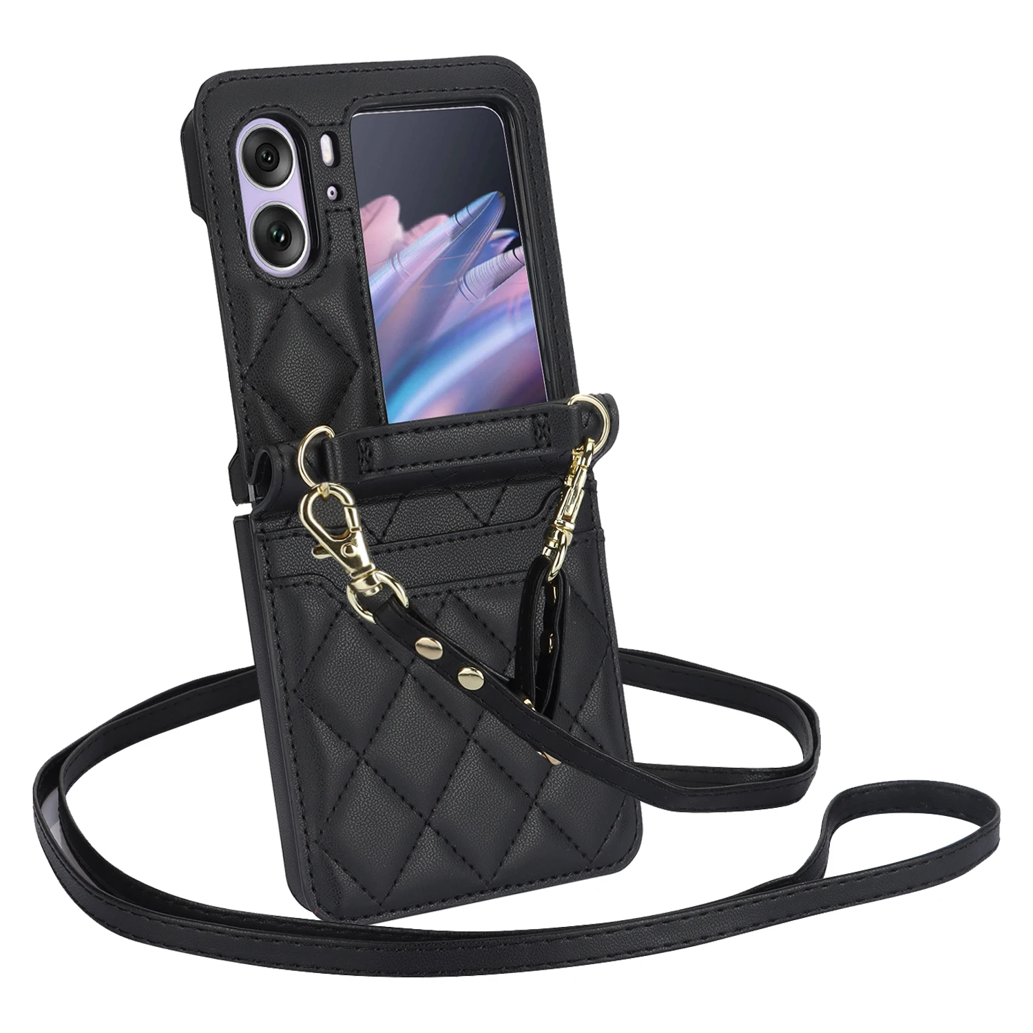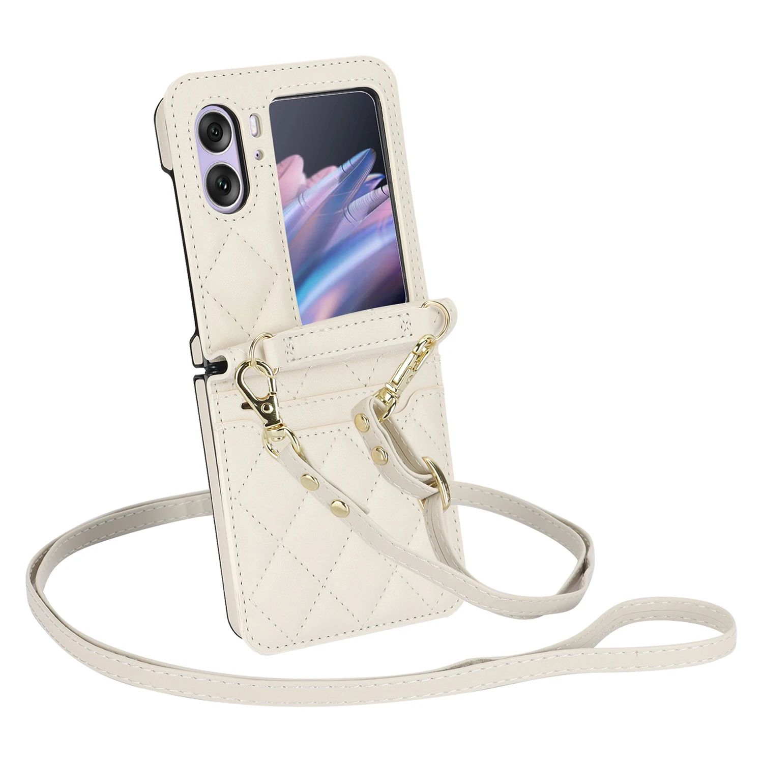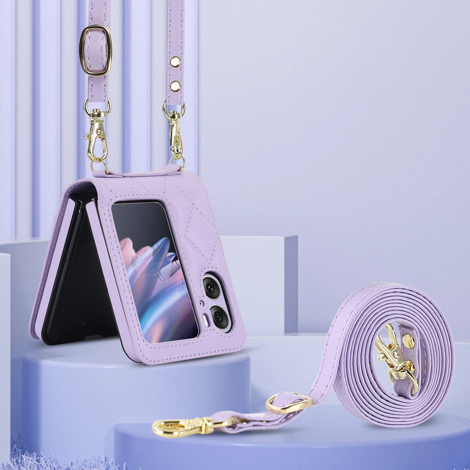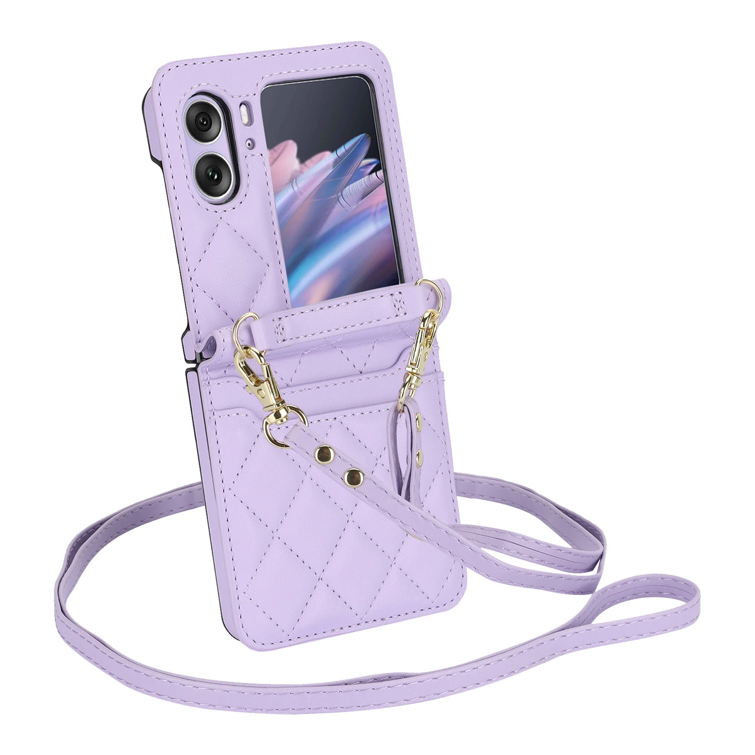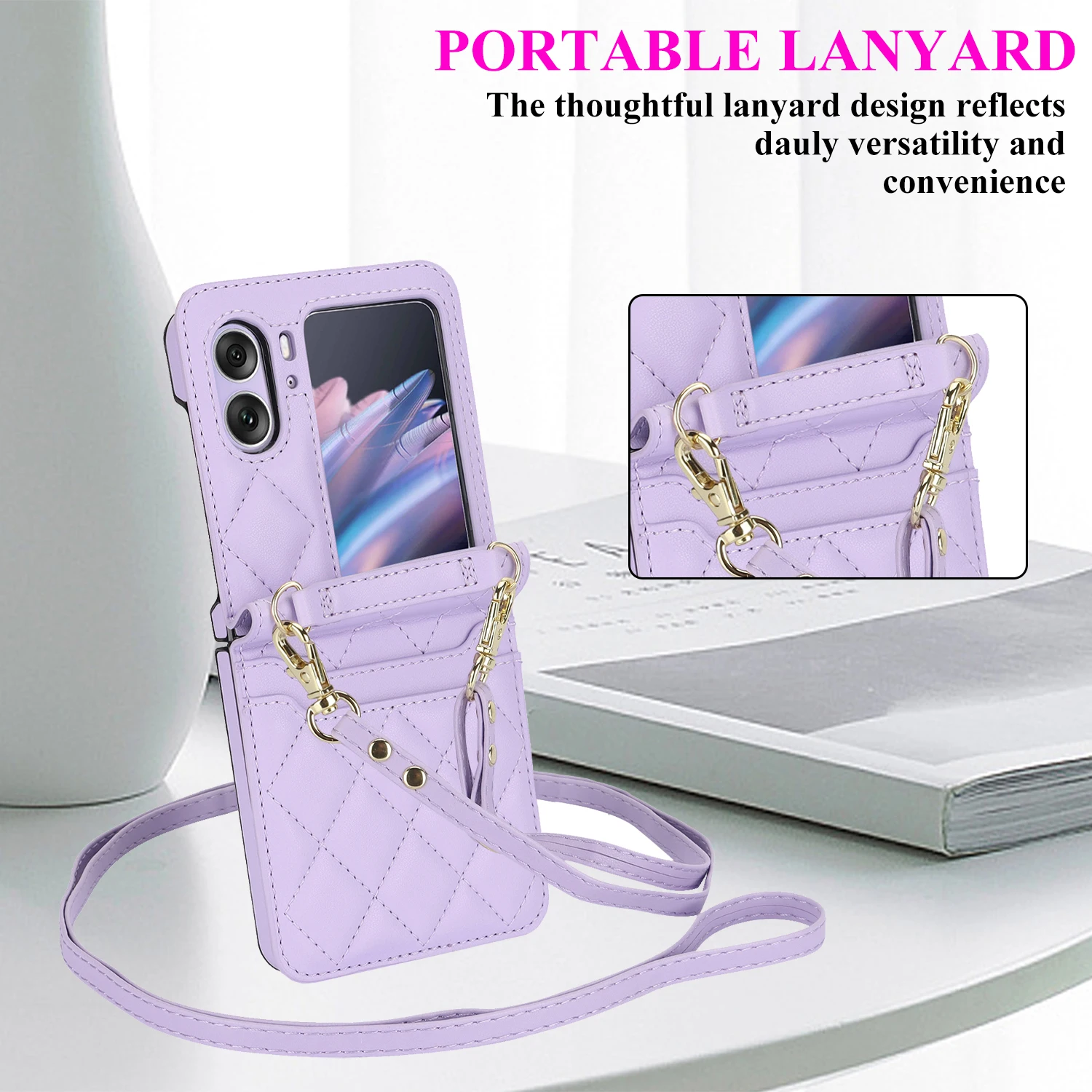 Comprar Funda de teléfono de cuero con solapa para OPPO Find N2, cartera con cordón largo, funda con cordón, bolso cruzado, moda