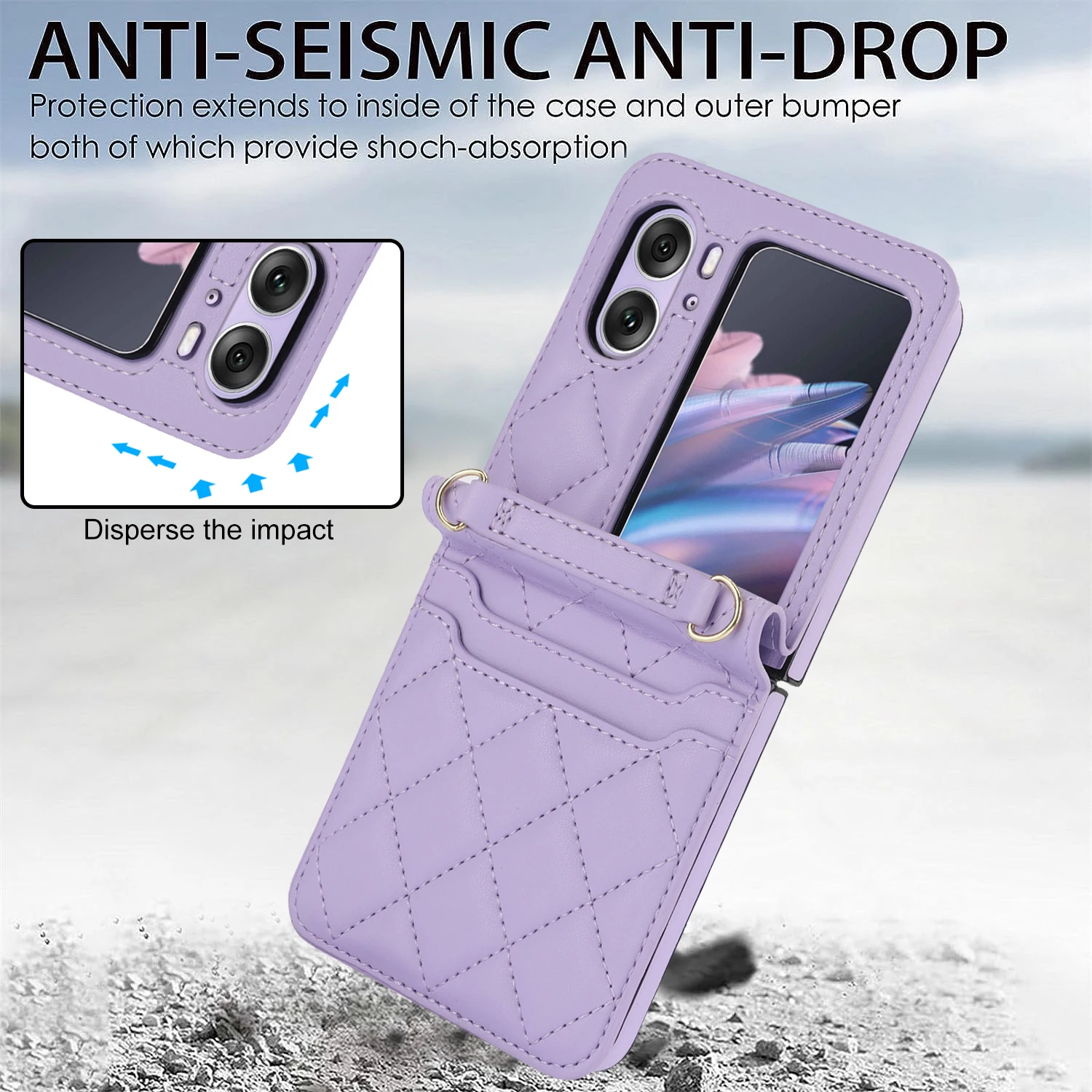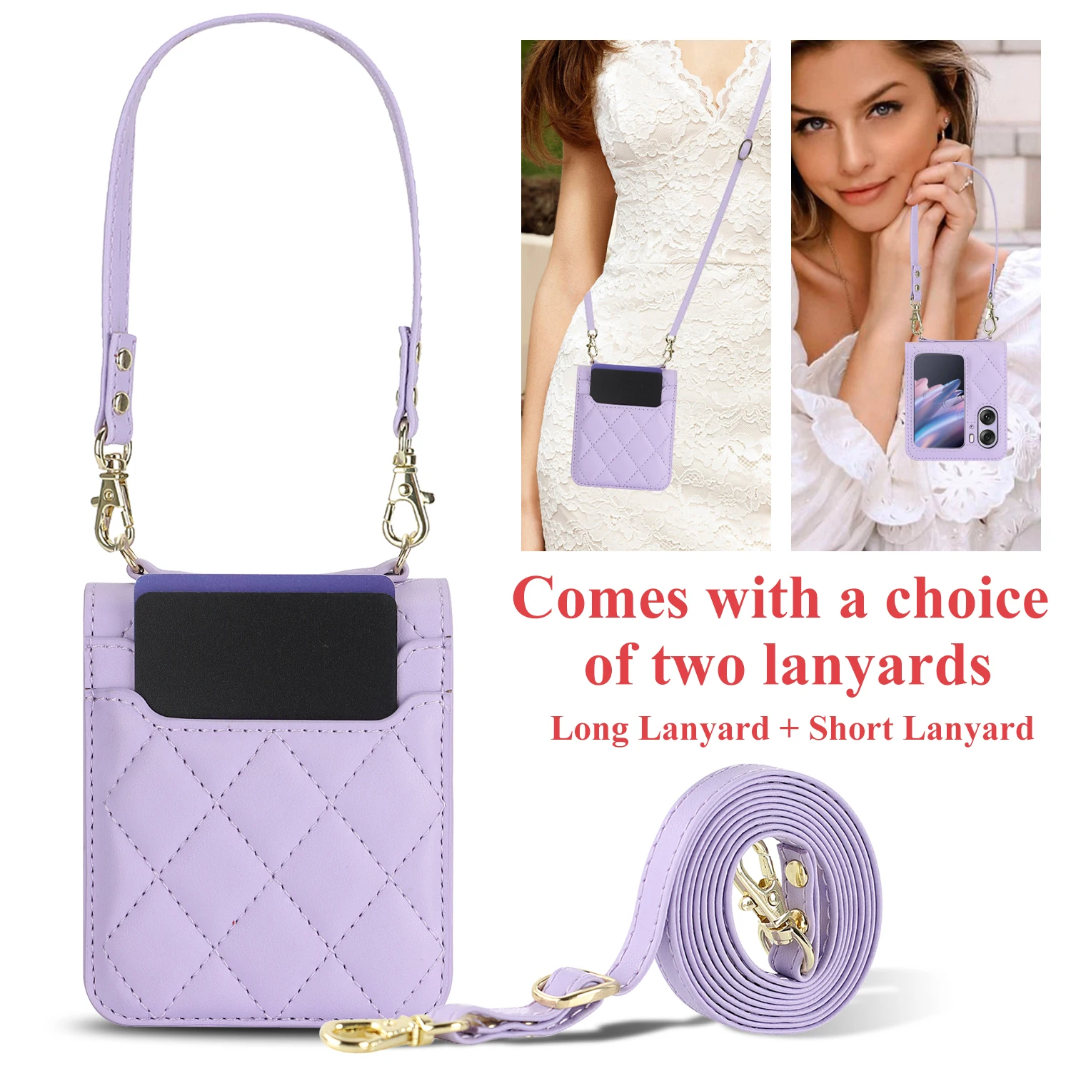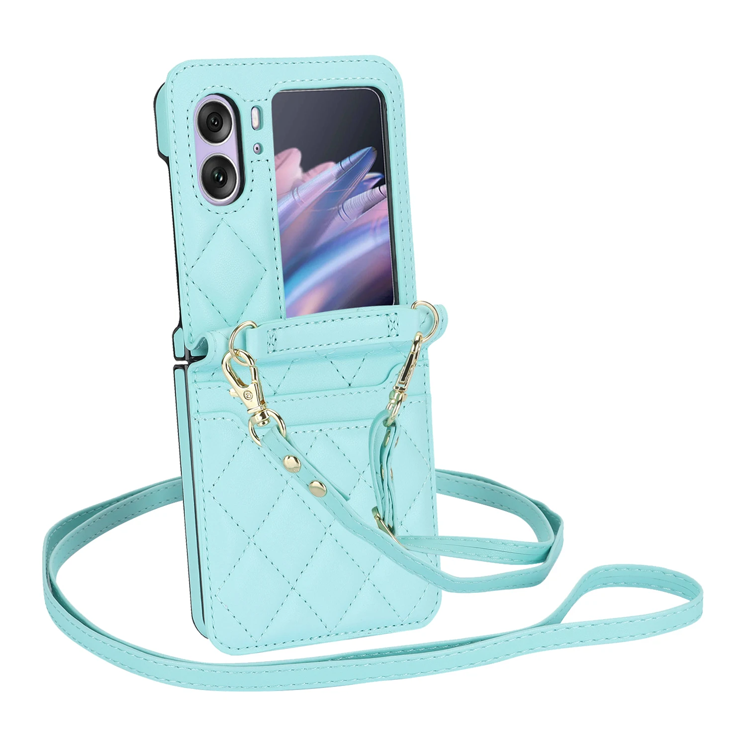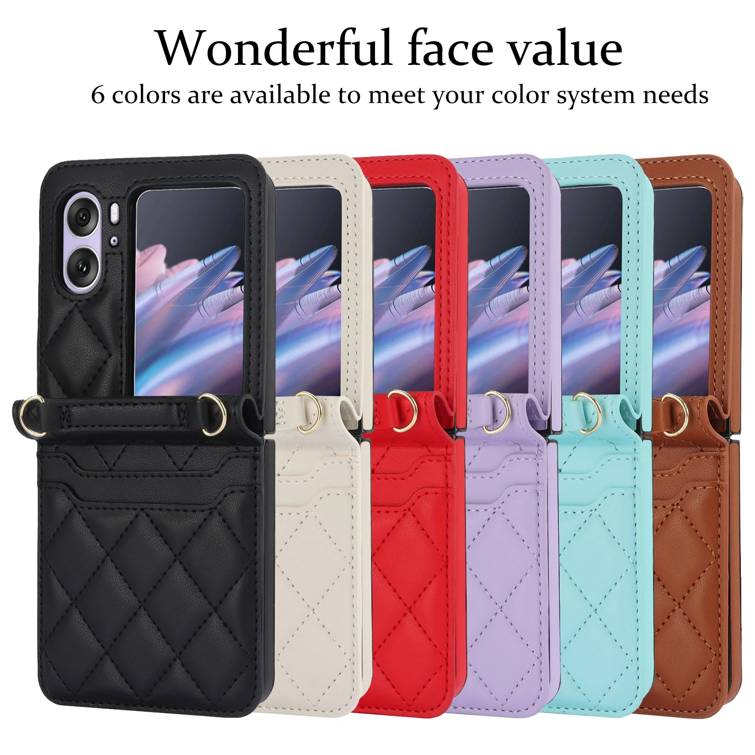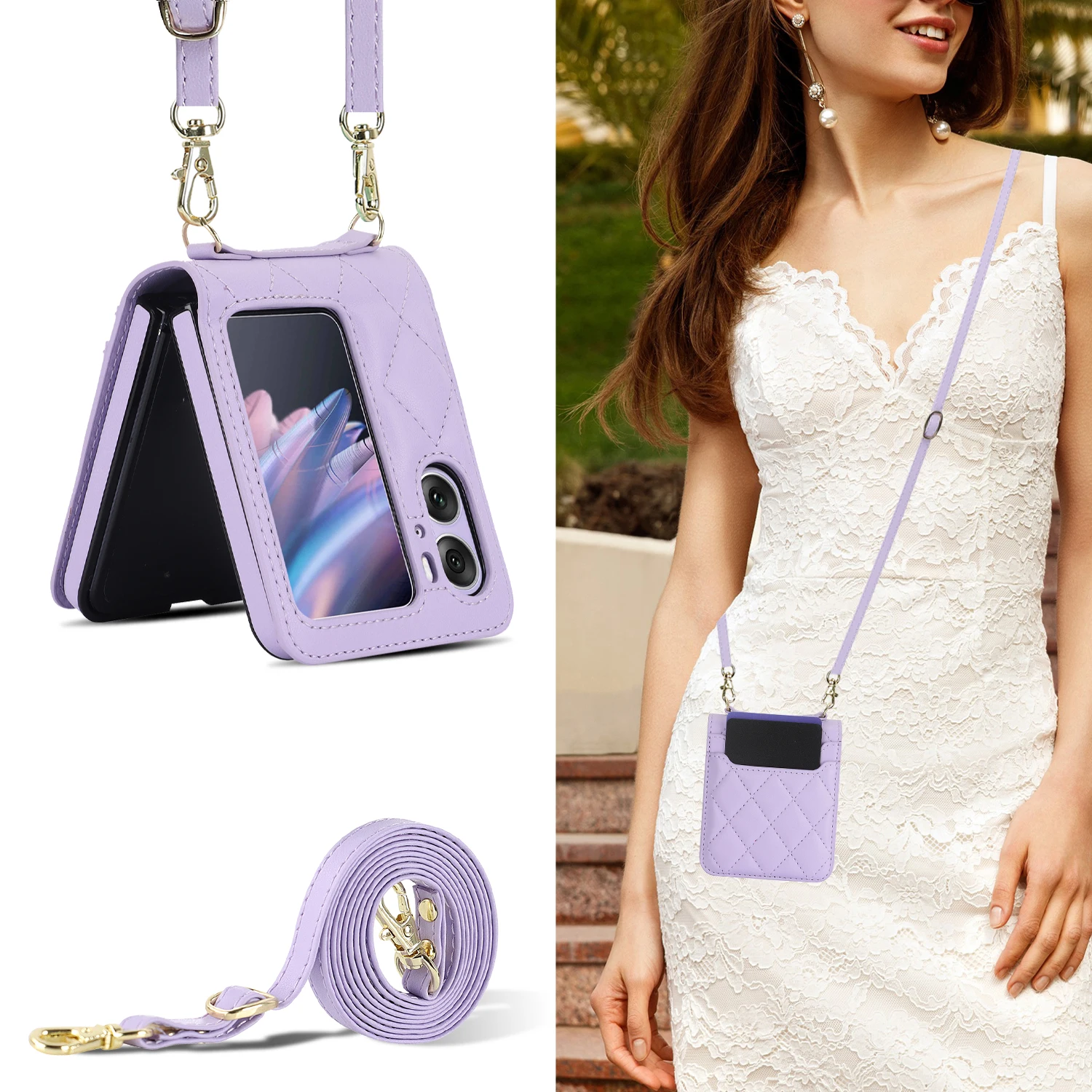 Comprar Funda de teléfono de cuero con solapa para OPPO Find N2, cartera con cordón largo, funda con cordón, bolso cruzado, moda