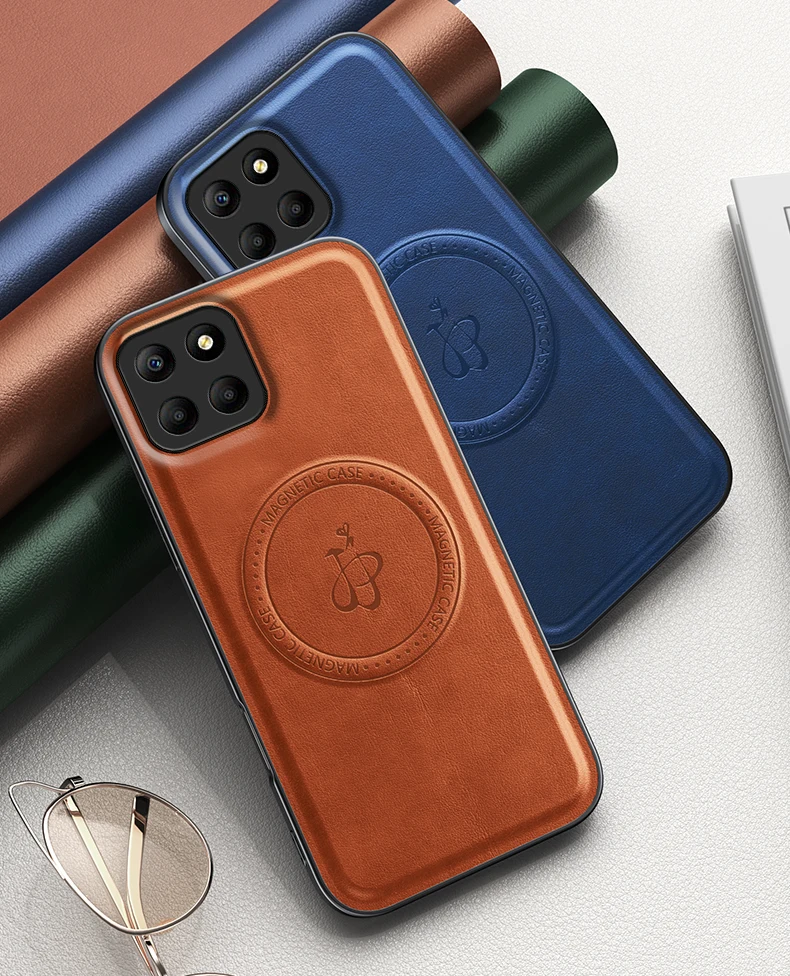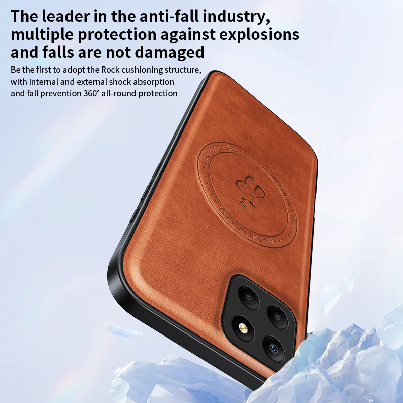 Funda de teléfono de cuero con soporte magnético para Honor X7C X8B X8C X9C X9B X9A 400 200 Magic 7 Pro Lite, cubierta con logotipo de carga inalámbrica