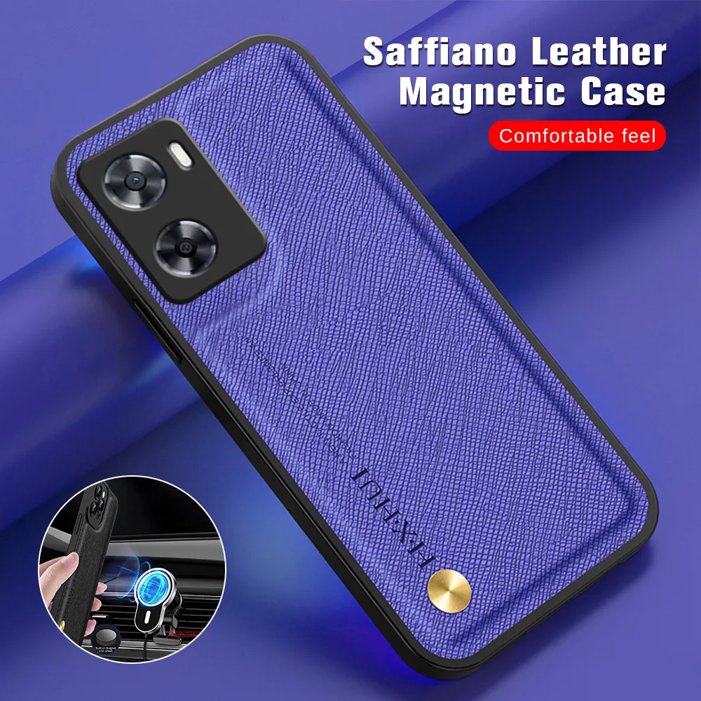 Comprar Funda de teléfono de cuero con textura cruzada para Oppo A57, soporte magnético para coche, protección de cámara, 4G, CPH2387