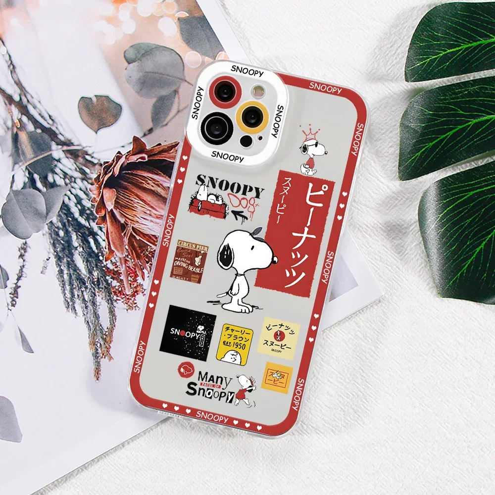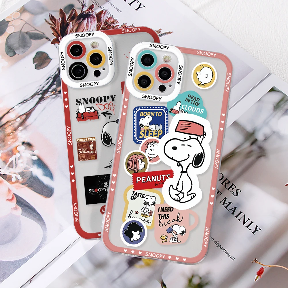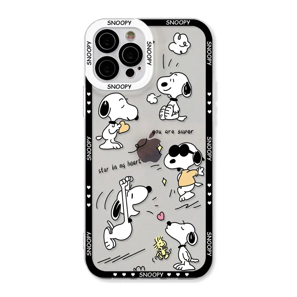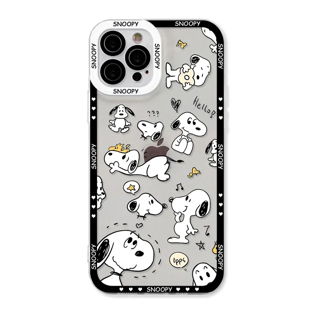 Comprar Funda de teléfono Cute Dog S-Snoopys para iPhone 16 15 14 Plus 13 12 Mini 11 Pro Max X Xs XR 7 8, funda suave transparente con estampado de borde