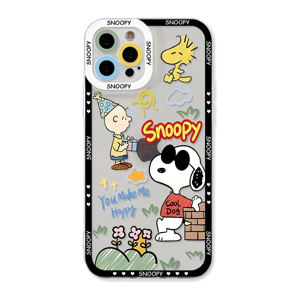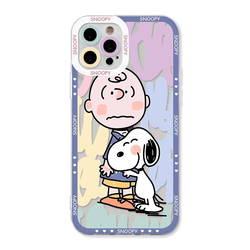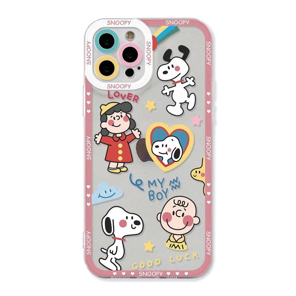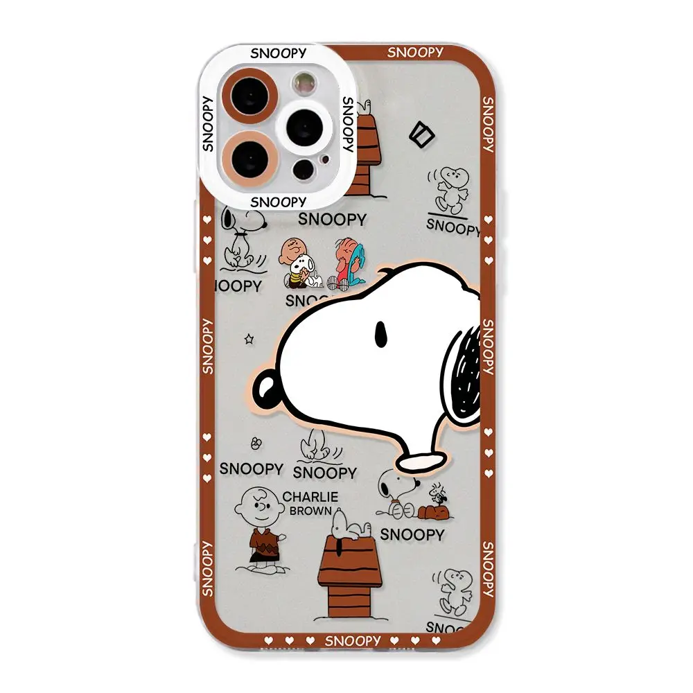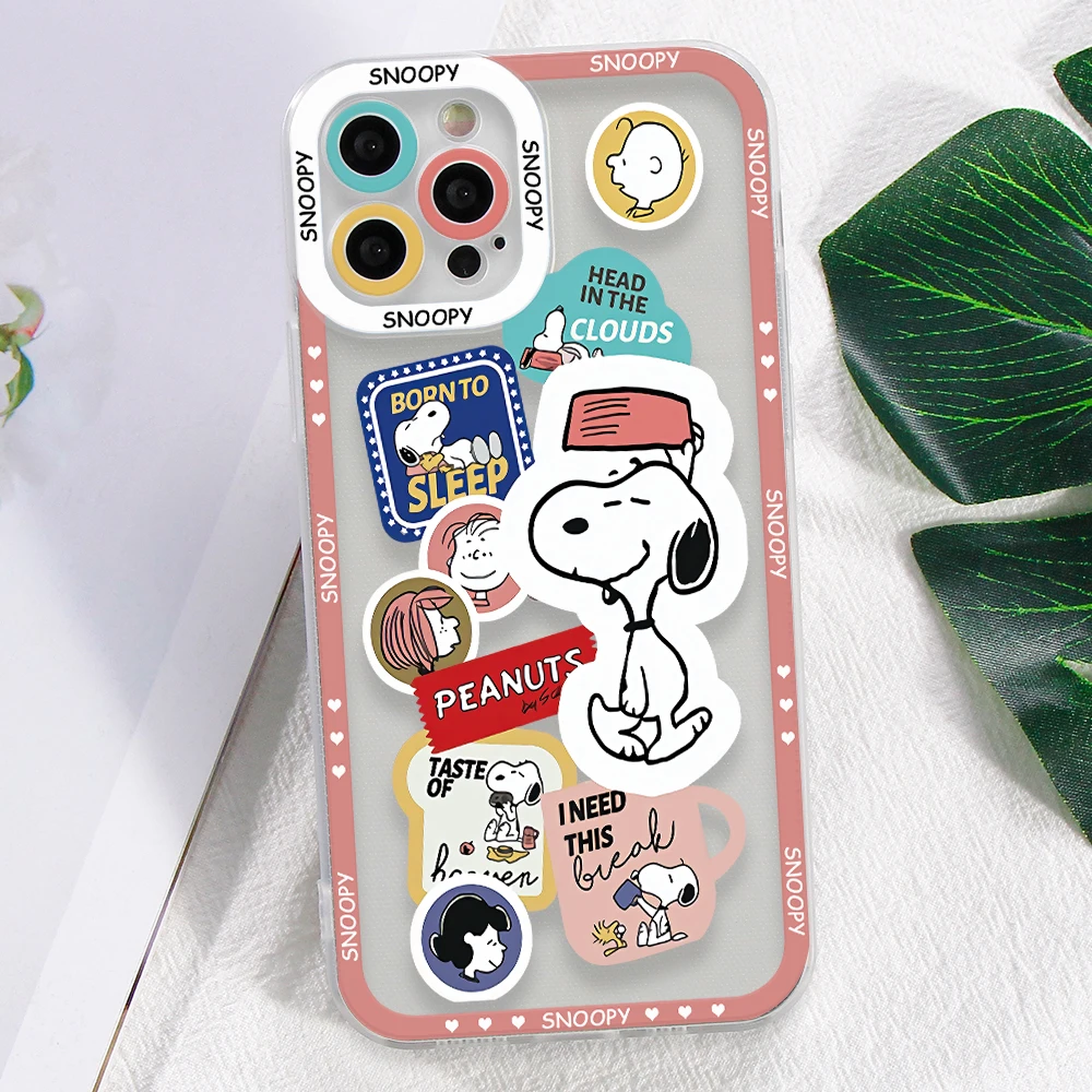 Comprar Funda de teléfono Cute Dog S-Snoopys para iPhone 16 15 14 Plus 13 12 Mini 11 Pro Max X Xs XR 7 8, funda suave transparente con estampado de borde