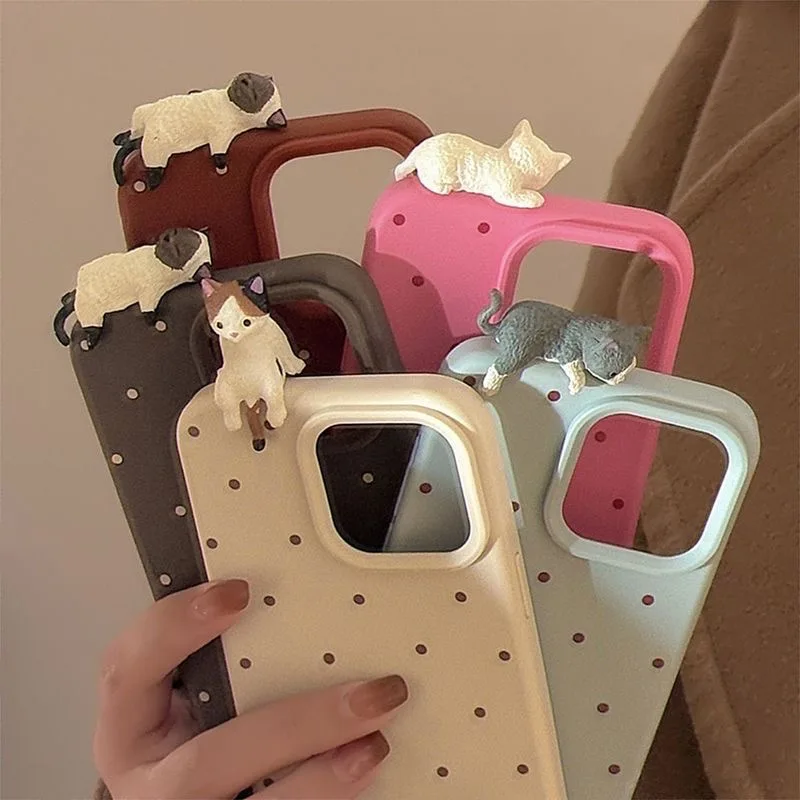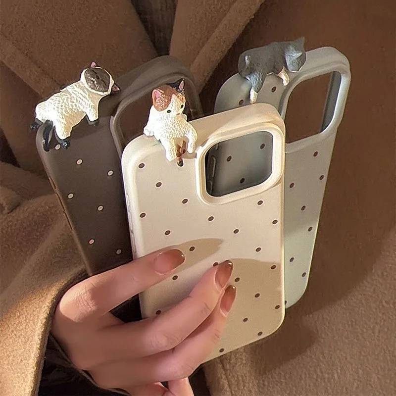 Funda de teléfono decorativa de lunares con diseño de gato 3D para iPhone 16 15 14 13 12 11 Pro Max 15 16 Plus, funda de silicona con parachoques a prueba de golpes