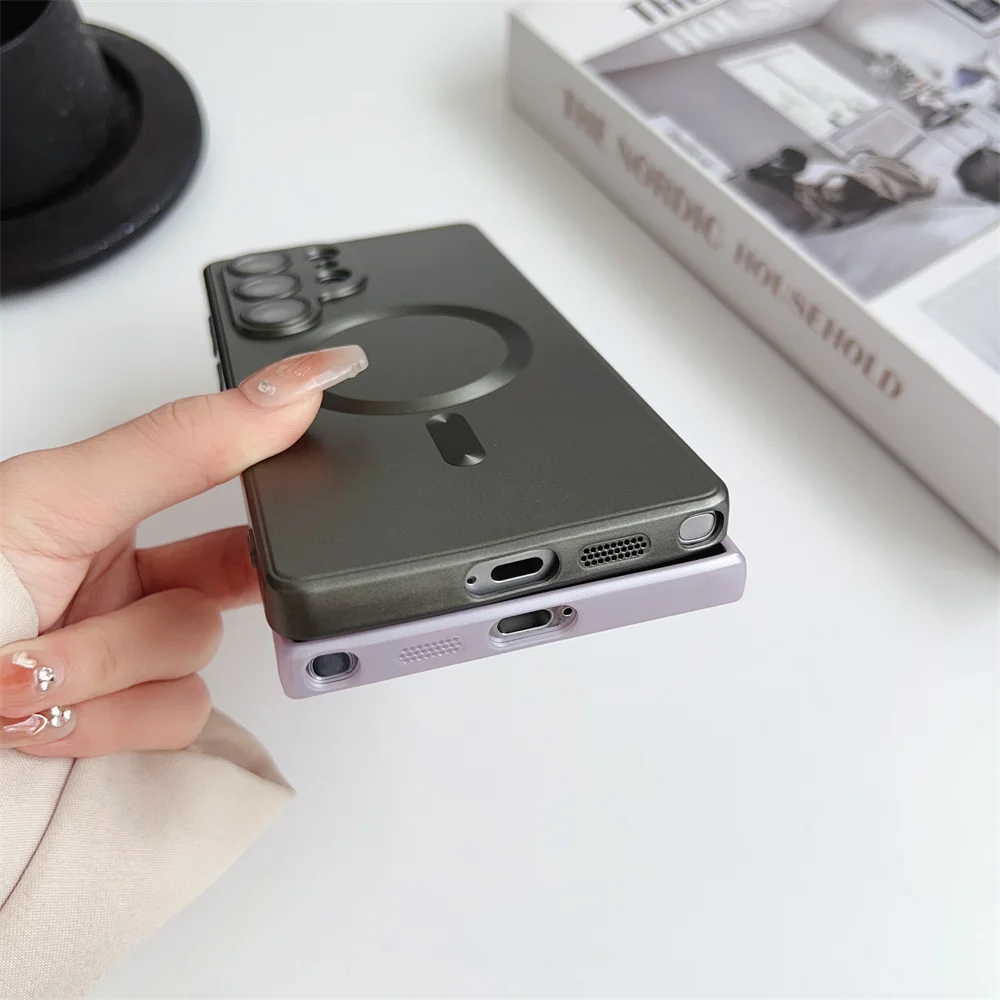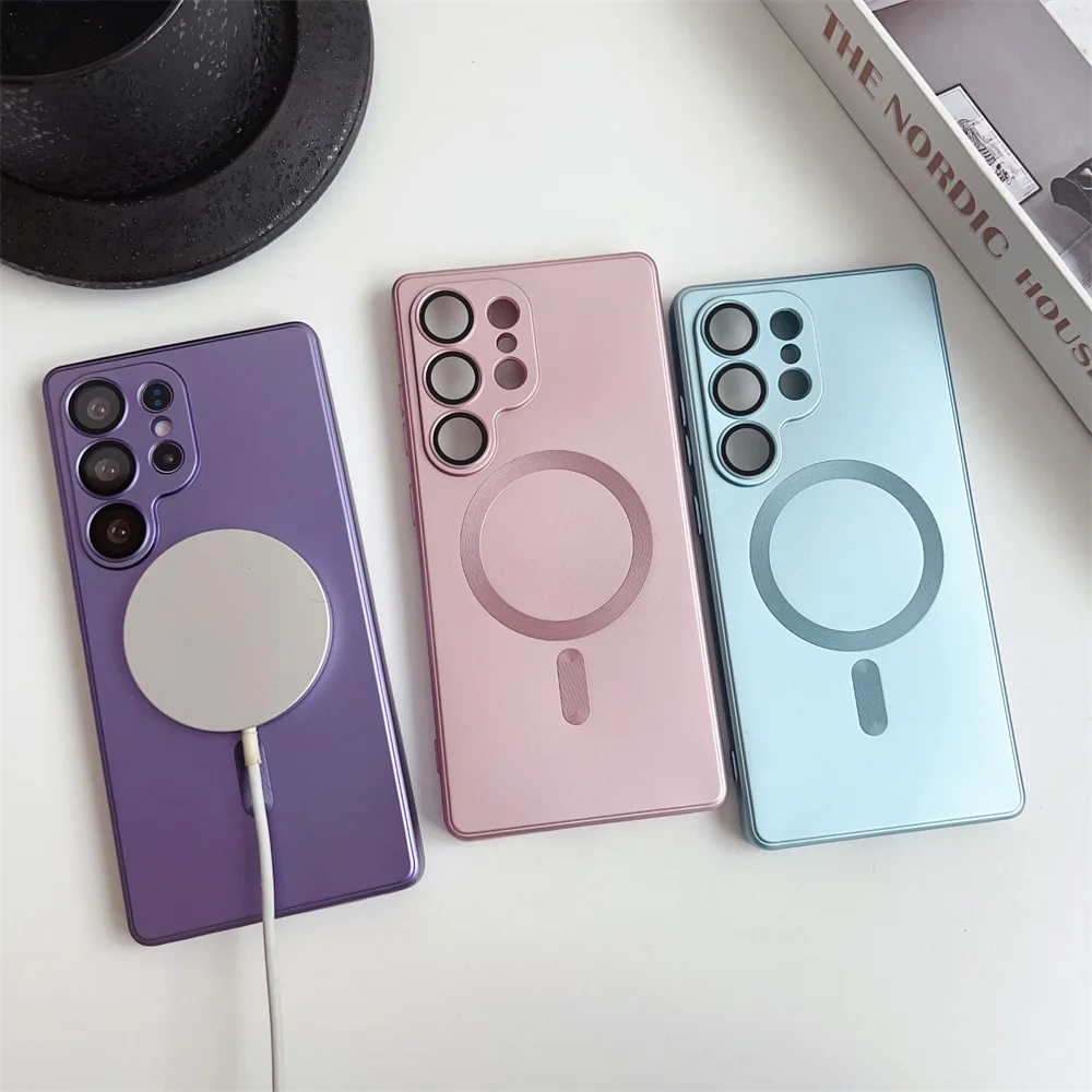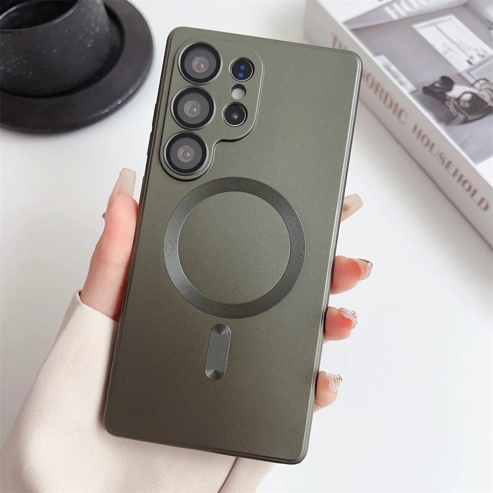 Luxury For Magsafe Metal Color Slim Phone Case For Samsung S24 S25 Note 20 Ultra S23 S22 S21 S20 Plus 10 Pro Protective Cover