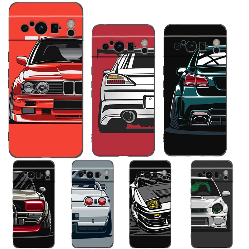 Funda de teléfono deportiva JDM para coche, carcasa de TPU suave para Google Pixel 8 A 7 6 Pro, Pixel 6A, silicona A prueba de golpes, color negro, Japón - imagen 1