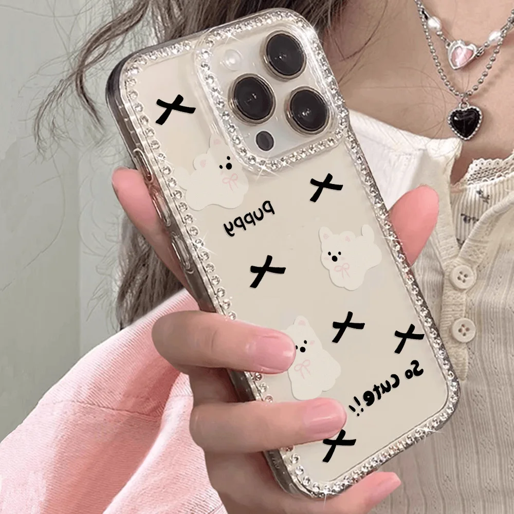 Funda de teléfono de diamante de lujo para iPhone 17 Pro Max 16 15 14 11 13 12 Air 17promax Funda transparente a prueba de golpes con cordón